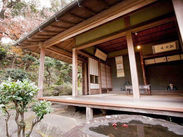 夏目漱石の小説『草枕』の舞台となった、明治の政治家・前田案山子の隠居所として建てられ、その一部が温泉宿として開放された別邸跡地です。漱石が五高時代に宿泊した「離れ」の6畳間と、浴場が現存しています。離れは1986年に修復され、浴場は2004年に当時のまま保存、上屋が復元され公開されています。