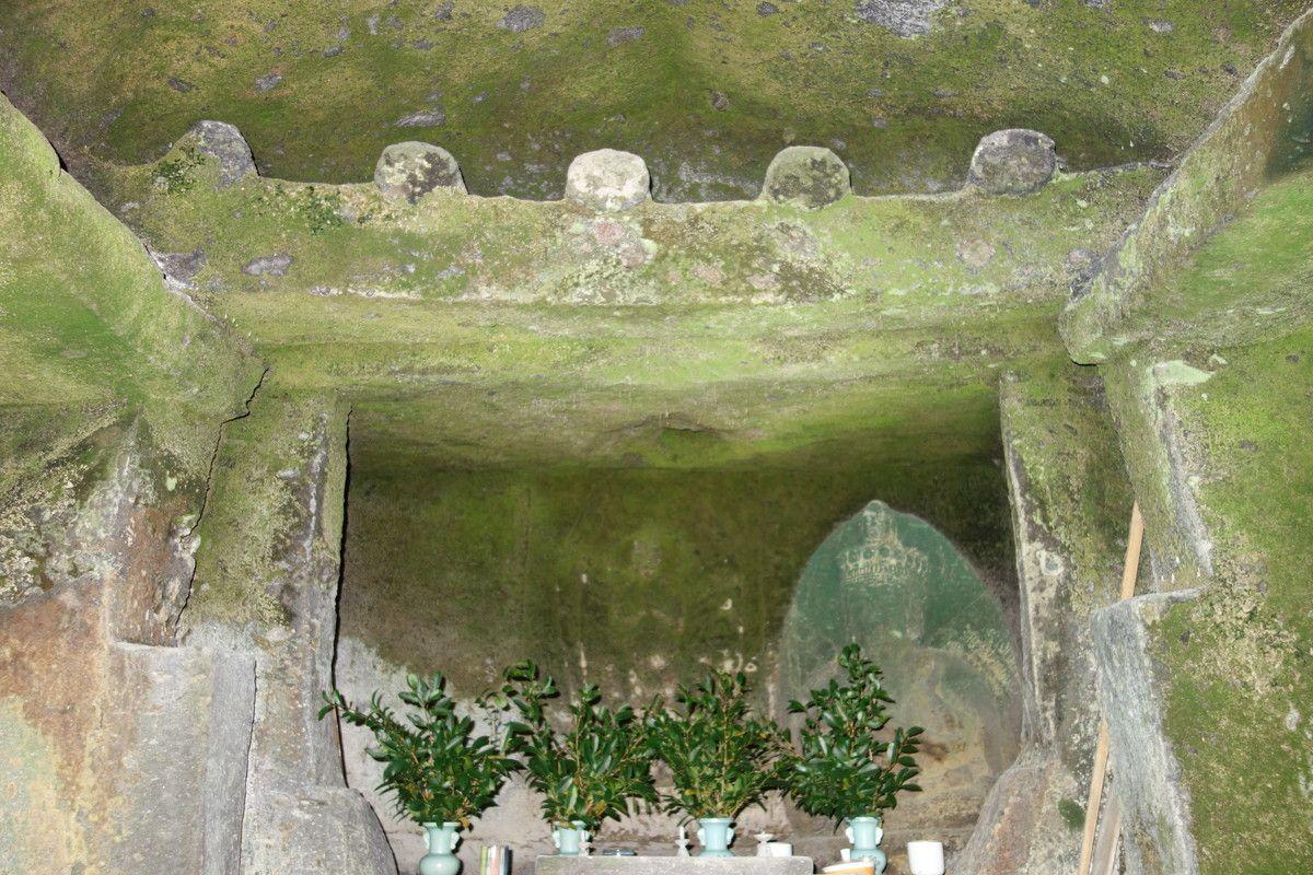 丘陵の西側に5基の横穴墓が造られており、2号墓の内部に千手観音が彫られていることから石貫穴観音横穴と呼ばれています。