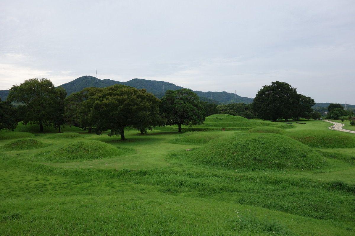 塚原台地上に営まれた古墳群で、前方後円墳のほか、円墳や方形周溝墓などが確認されています。