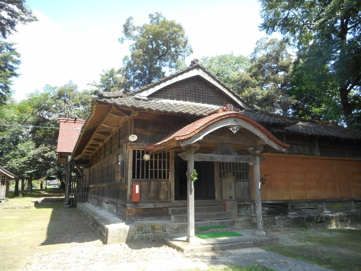 相良氏の”戦の神”として信仰を集めた八幡宮で、宝治元年(1247年)に相良頼親が勧請したと伝わります。 その後度々の改修を経ましたが、元禄12年(1699年)の火災で本殿・拝殿などすべての建物が焼失し、この後相良頼喬によって再興されました。現存の建物はこの時の造営によるものと思われます。