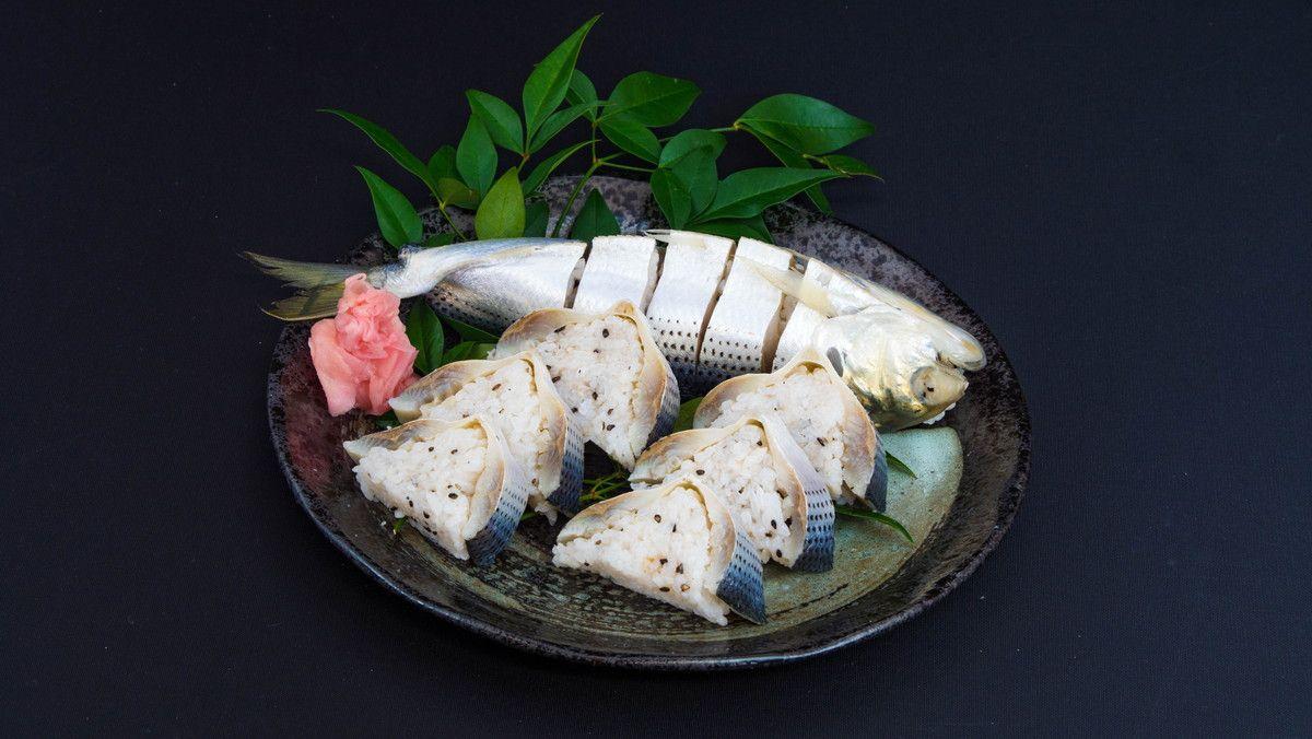 菊池川の河口で取れるこのしろ(ニシンの一種で海水魚)を1尾まるまる使った寿司です。正月や祝いの席などによく食べられます。