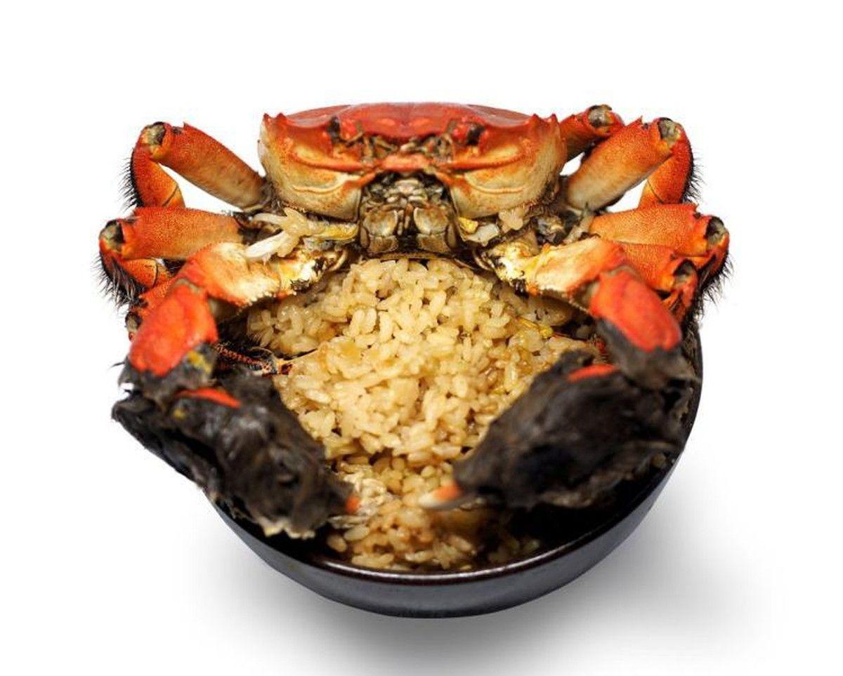 秋から冬に食べられる郷土料理で、ガネ(川ガニ)の炊き込みご飯です。