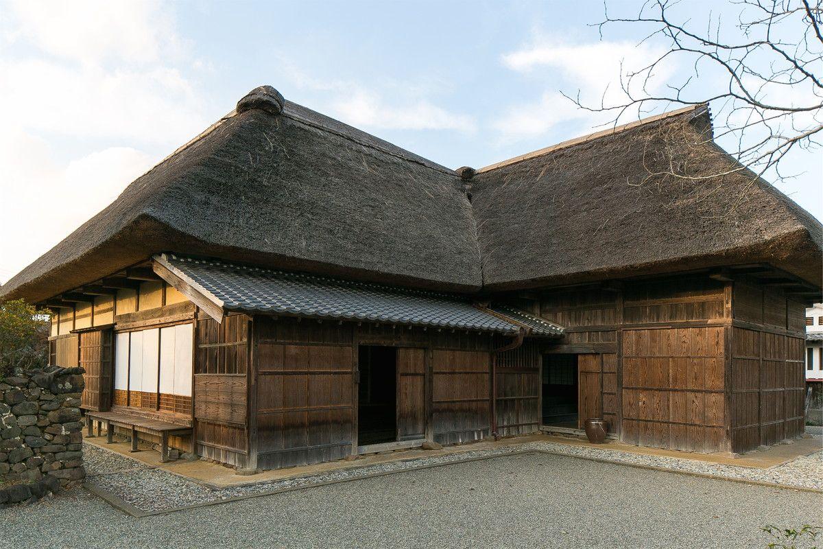 江戸時代後期に建てられたと伝わる住宅です。家づくりの規制が厳しかった時代に、鉤型(かぎがた)に棟を増やし、住宅の広さを確保した特徴があります。幕末には、焼酎を製造していたと記録に残っています。