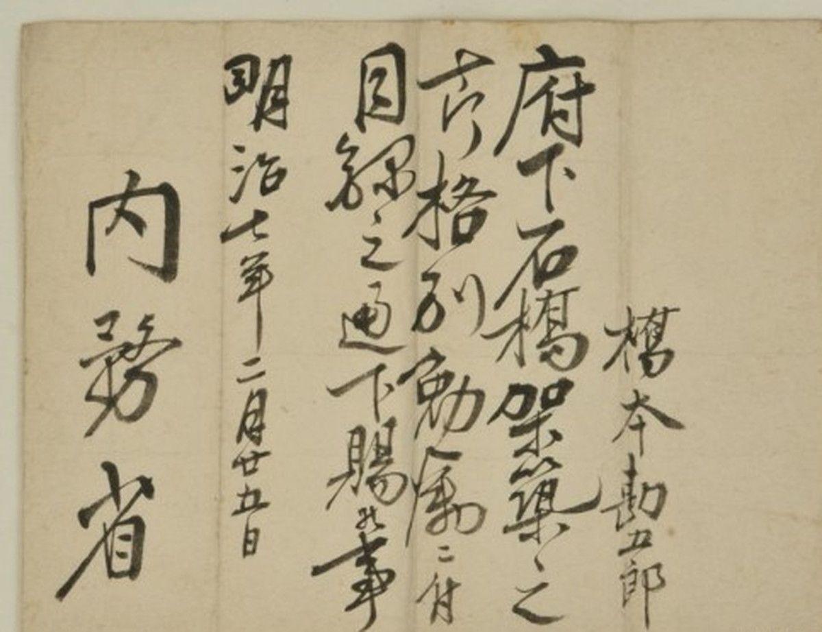 八代の石工の代表的存在だった橋本家には、めがね橋の設計図や架設する際の見積書などが残されています。彼らが技術者であると同時に設計者であり、経営者としても有能だったことを今に伝えています。