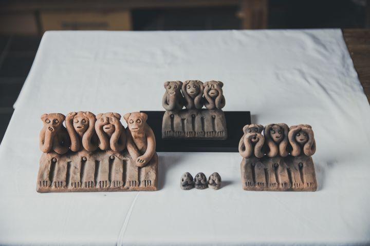 Since all Konohazaru are made by hand, each one has a slightly different shape and expression. Above all, the simple and dull appearance and the shaded white, red, and blue colors and patterns are simply exquisite. This design has been passed down from generation to generation, but it still looks cute and modern, attracting renewed attention. People have been displaying the Konohazaru at doorways since ancient times and they have been treasured as a guardian deity that wards off thieves, disasters, and diseases, and brings prosperity to descendants. Many people buy them as souvenirs during the COVID-19 pandemic, hoping that they will protect their loved ones. Clay classes are also available by reservation.