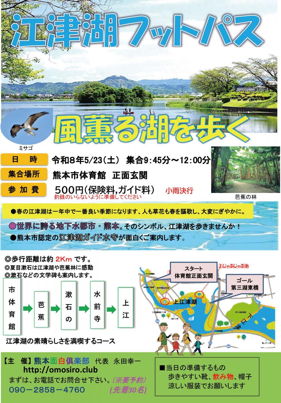 世界に誇る地下水都市・熊本。そのシンボル・江津湖を歩きませんか。熊本面白倶楽部では5月23日(土)に、江津湖のすばらしさを満喫できる“春のフットパス”を開催。ただ今、参加者を募集中です。