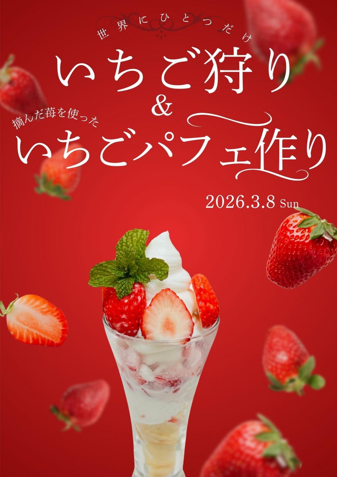 当日は今が旬の苺を食べ放題で楽しんだり、摘んだ苺を使ってパフェ作りをしたり、普段は味わえないスペシャルな体験ができます。パフェに使用するアイスやソフトクリームは、菊池や熊本県産の素材を使った手作りのものを使用し、苺の見分け方や美味しい選び方、パフェ作りのコツはプロが丁寧にアドバイス。募集人数は20名です。ぜひこの機会に参加してみませんか。ただいまWEBにて予約受付中。詳細は下記サイトで確認を。