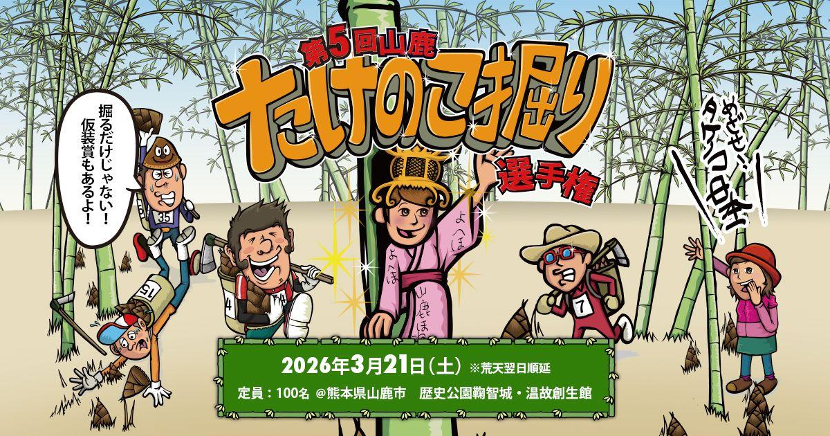 走力とたけのこを探し出す嗅覚が試されるアドベンチャーレースが今年も開催されます。制限時間は60分!竹林まで走って、たけのこを見つけて、時間内にたくさん掘ろう!嬉しい参加賞ももらえます。※定員は先着100名で小学3年生以上なら誰でも参加OK。エントリー方法は下記HPよりご確認ください。
