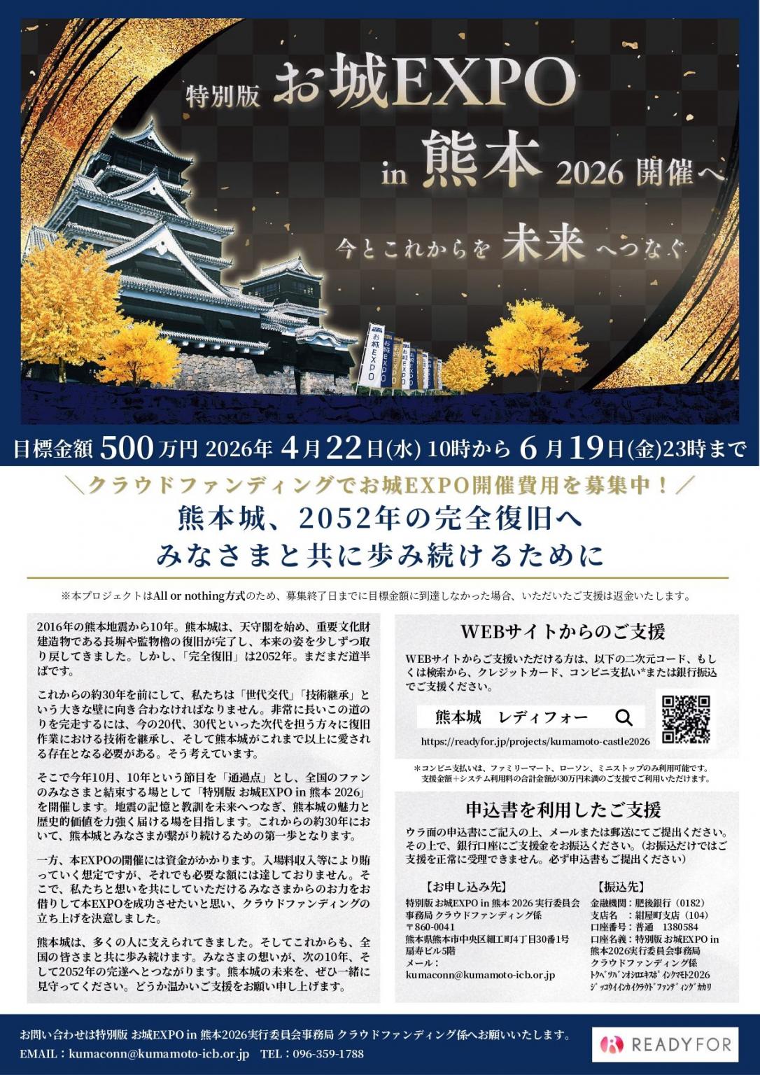 熊本城の未来、そして歴史文化の継承につながる取り組みとして、本イベントの開催を支えるクラウドファンディングも実施中。詳細は下記HPよりご確認ください。