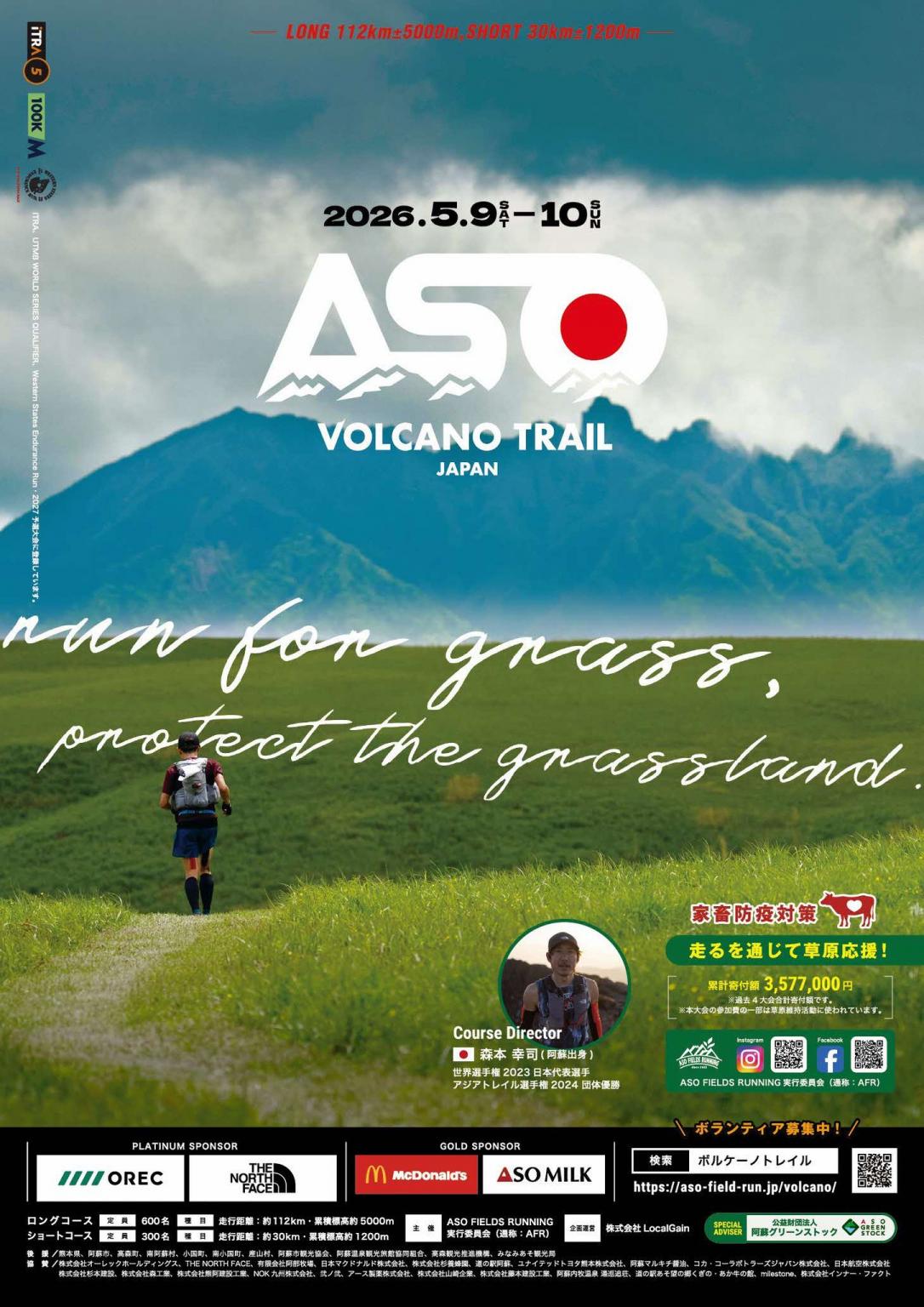 5月9日・10日の2日間、阿蘇の大自然を舞台にしたトレイルランが開催されます。山や森林、草原を駆け抜けるランナーたちを応援しませんか。同イベントは「阿蘇の草原を次の千年につなぐ」という想いのもと、阿蘇・内牧をスタート。根子岳東側や高森峠など総距離114㎞を巡るコースで、フィニッシュは巨大野外ステージのアスペクタです。コースディレクターには、トレイル世界選手権日本代表にも選ばれた森本幸司氏が就任。トップアスリートが手がける魅力的なコースにも注目です。自然と一体となるスポーツを、ぜひ現地で体感しませんか。