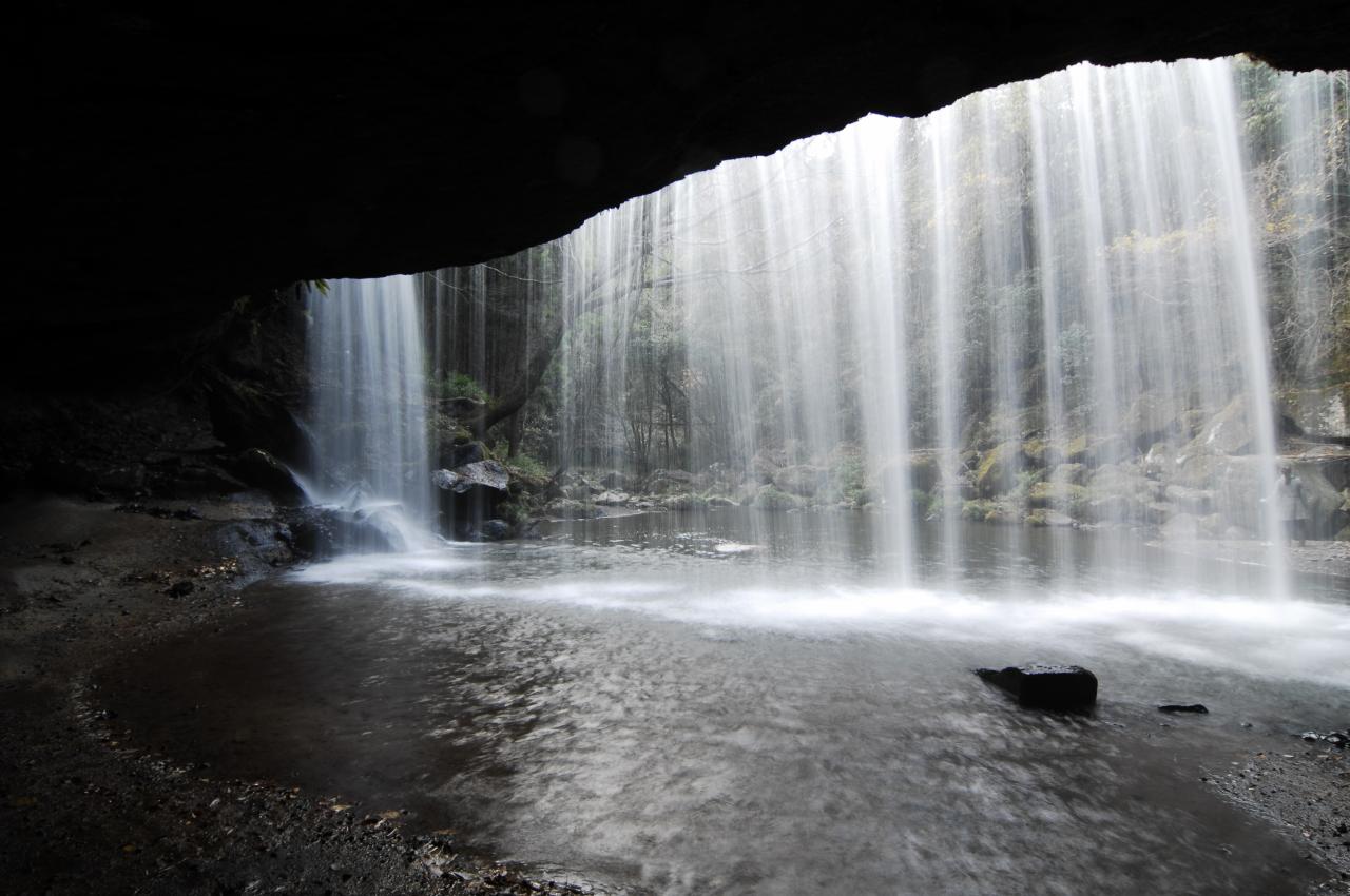 流れ落ちる滝の裏側を通れ、「裏見の滝」として知られる滝。