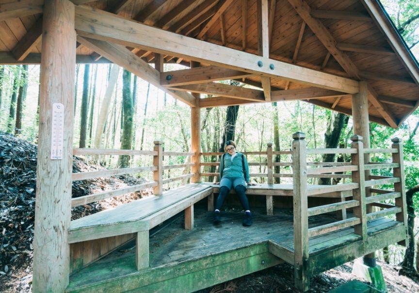 1,700段目付近の箇所にトイレがあります。こちらは、おがくずで分解するバイオトイレです。その仕組みが興味深いので、のぞいてみるのも楽しいかも。