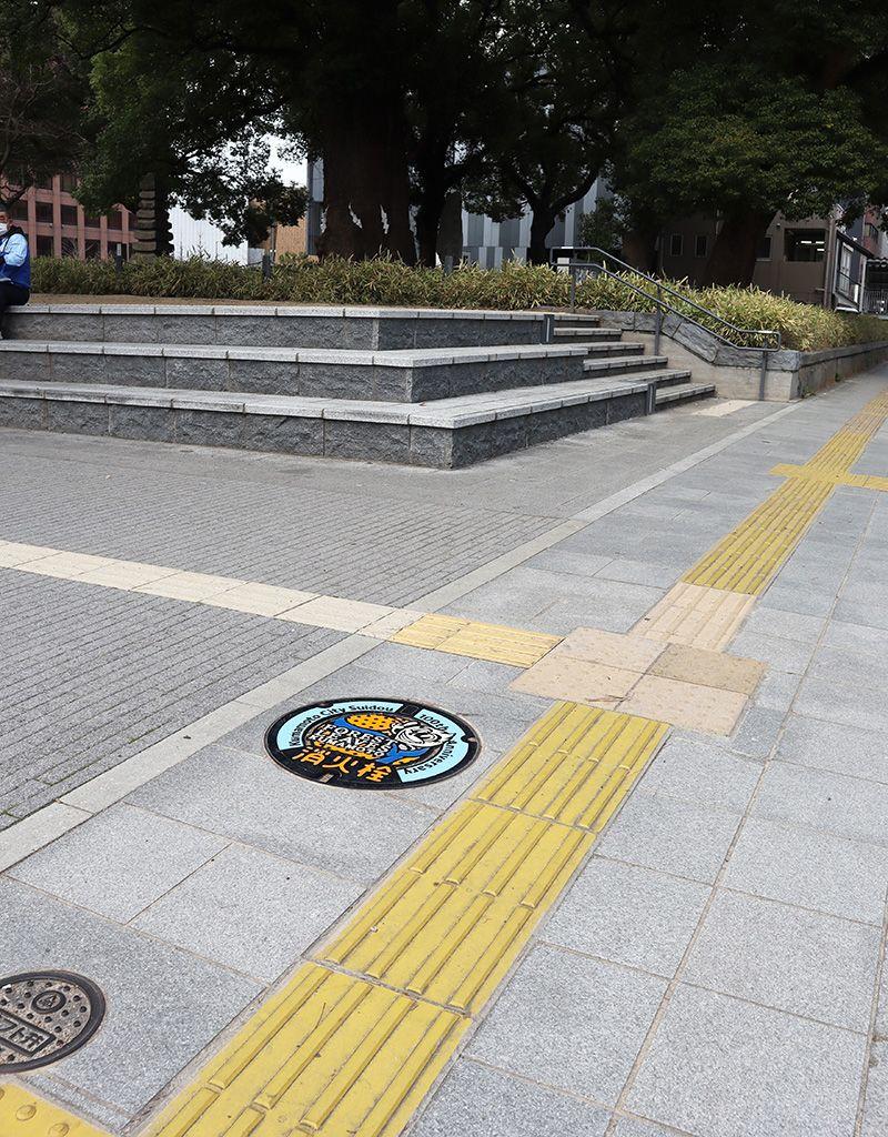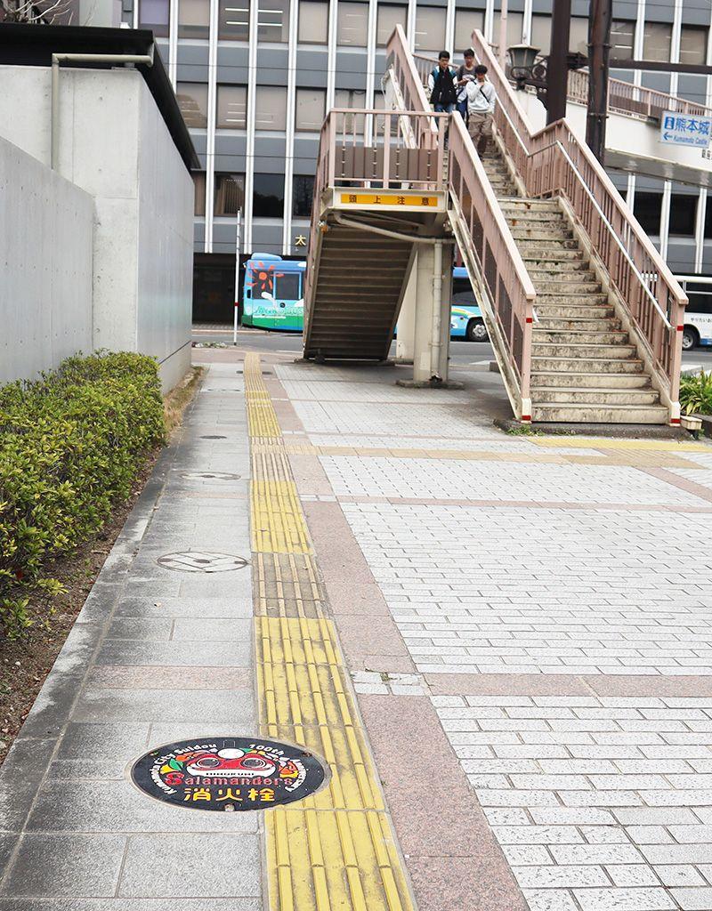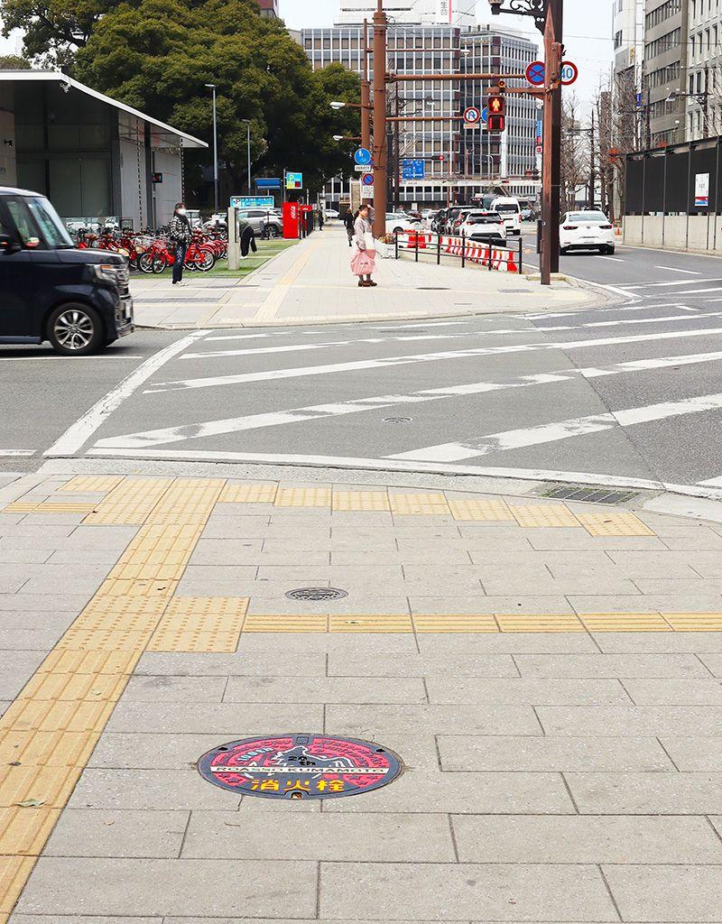 今月25日に発行予定の4つの消火栓のマンホールカード。そのベースになっている「デザインマンホール」を探すなら、熊本市中心街にある「花畑広場」周辺を散策すべし。電車通り沿いの歩道、約240mの範囲に4つのデザインマンホールが一定間隔で設置されているので、買い物や観光がてら気軽に探せると話題に。直線を歩くだけなので、見つけるのも簡単ですよ。ぜひトライを!