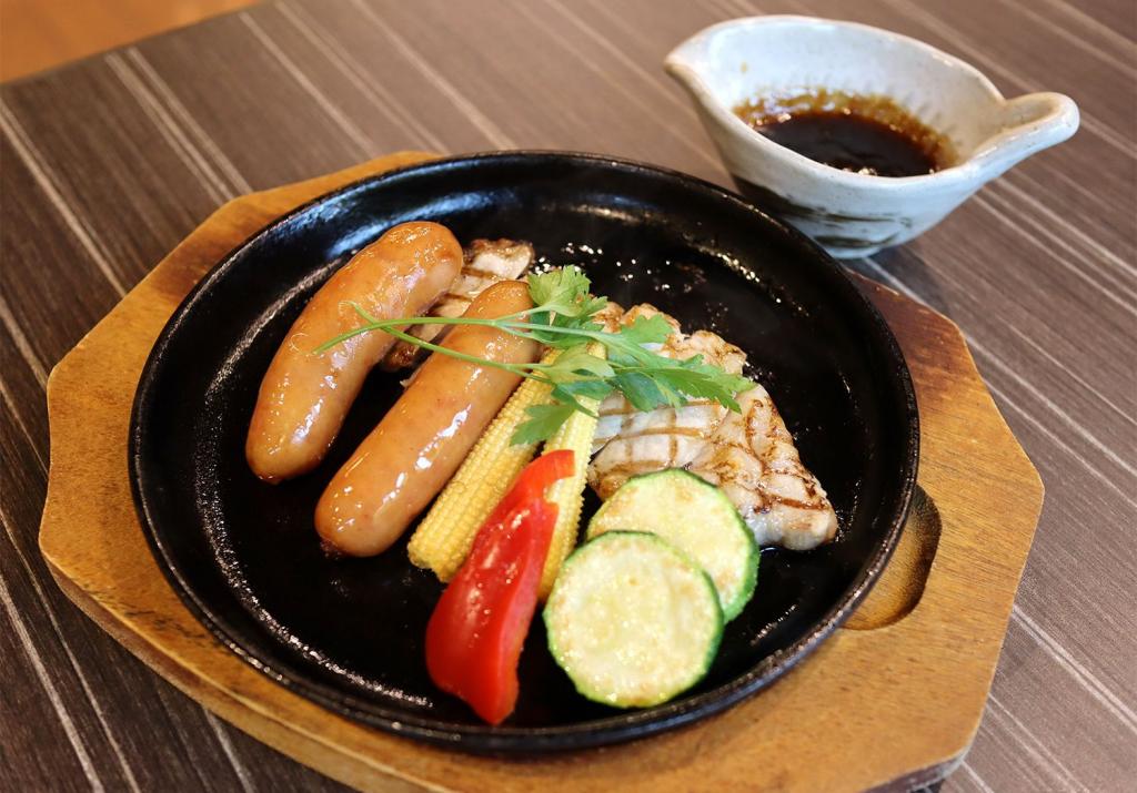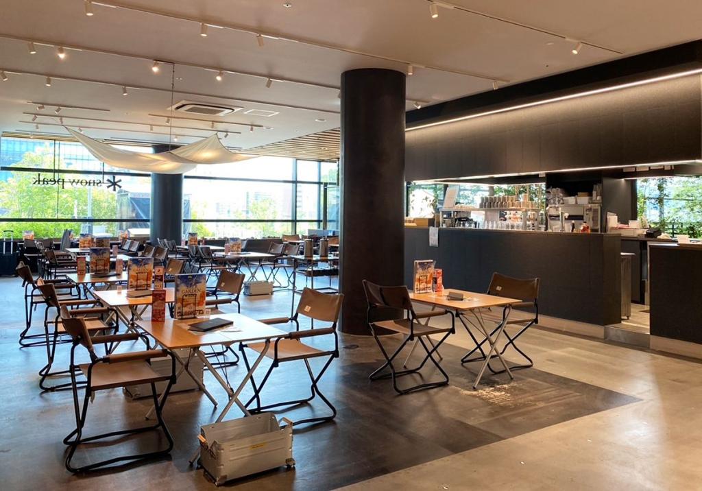 前回好評だった3階「おやねテラス」でのディナーに加え、今回から新たにランチタイムの営業がスタート。12時~15時の間は、エアコンの効いた室内(snow peak Cafe内)で待望のBBQが楽しめるようになりました。