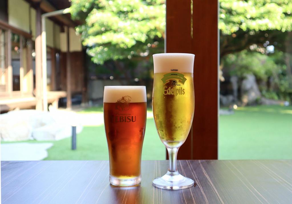 ひと際目を引く建物は、大正元年に建造された豪商・水野家の旧家を移築したもの。重厚感たっぷりの店内で、樹齢100年以上の「木斛(もっこく)」の木が見守る庭園を眺めながら、他とは違うビアホール体験ができます。