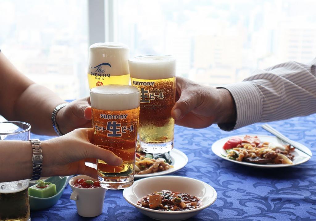 飲み放題メニューは37種類。生ビール(プレミアムモルツ香るエール、サントリー生ビール、パーフェクトサントリービール)、角ハイボール、カクテル各種、ジャスミン焼酎などのアルコール類のほか、ノンアルコールも7種類と、飲めない人にも嬉しいラインナップです。