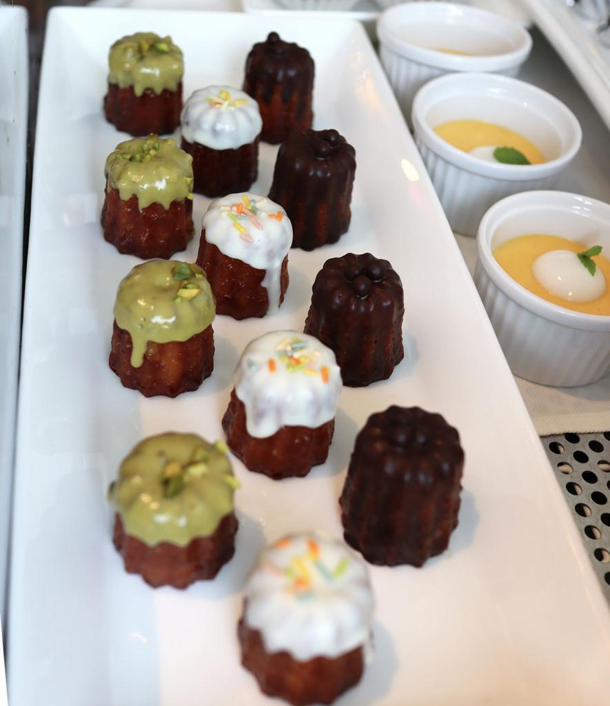 お腹いっぱいでも、スイーツは別腹! パティシエ特製デザートコーナーには、カヌレやティラミス、バスクチーズケーキなど、味も見た目も◎な魅惑のデザートが日替わりで並びます。ワインとのマリアージュも楽しめそう!