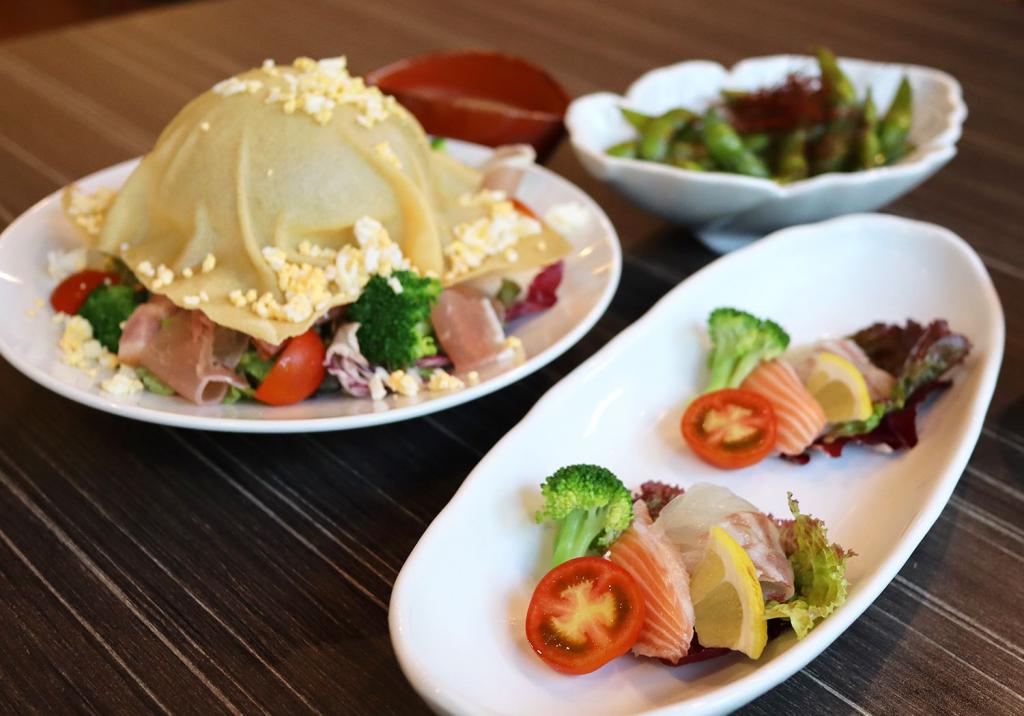 御膳や会席料理など、四季折々の日本料理が評判の同店。ビアホールでも“ビールによく合う”をコンセプトに、和テイストの料理が並びます。