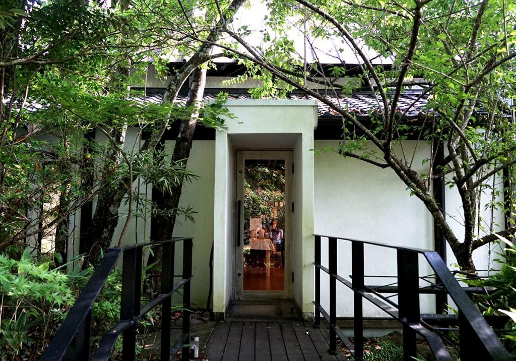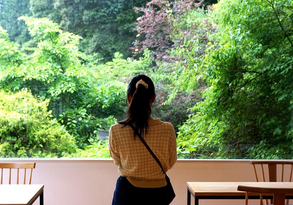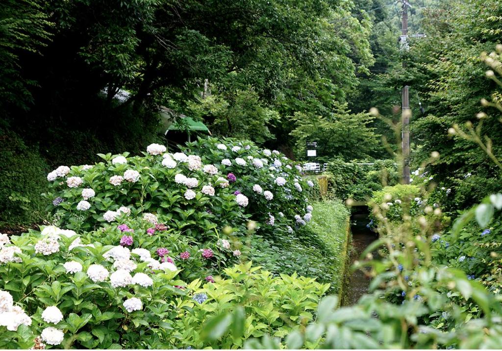 お昼ご飯のあとは、甘いものが恋しくなって、錦町へ。20分ほど車を走らせると、紫陽花の咲きはじめた山あいに、静かに佇むカフェ「球磨禅心生活」に到着。店を囲む緑と花々に目を奪われます。