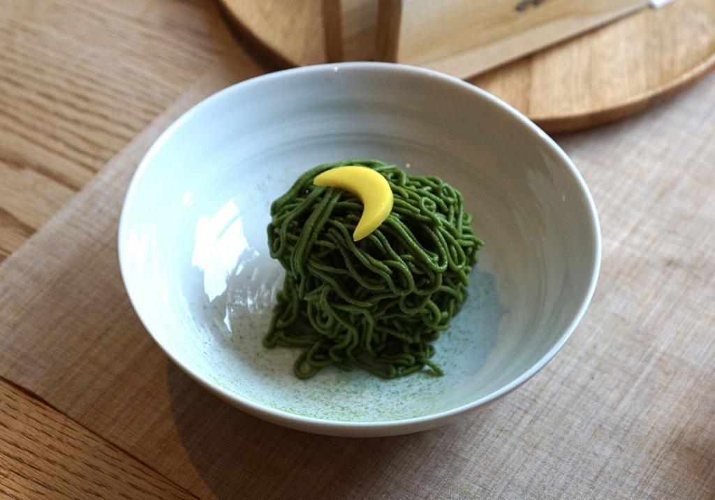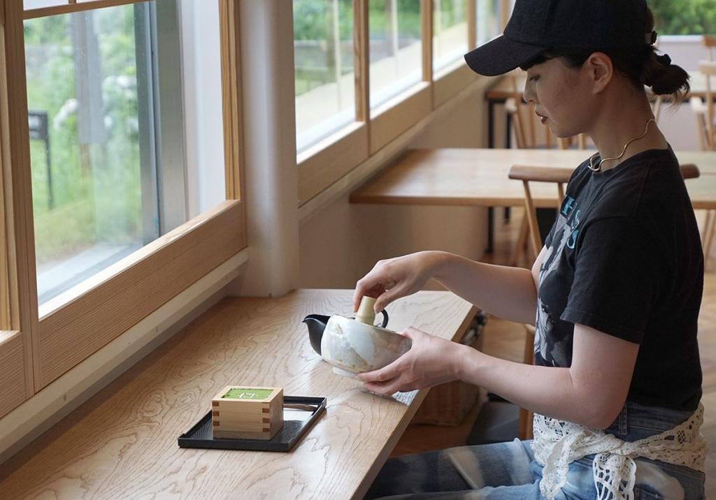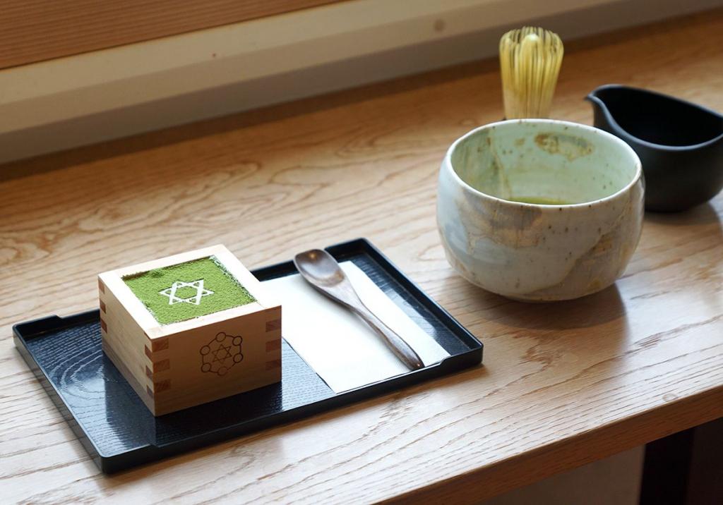 こちらは、カフェの看板メニュー「新宮禅寺の抹茶豆腐ティラミス」。。オリジナルの球磨禅心抹茶、そして豆腐とおからを使ったスイーツで体に優しく、それでいて満足感のある一品。とろりとした豆腐のソースと、おからのほろりとした口あたりが絶妙に重なり、食べ進めるほどにその魅力が深まっていきます。