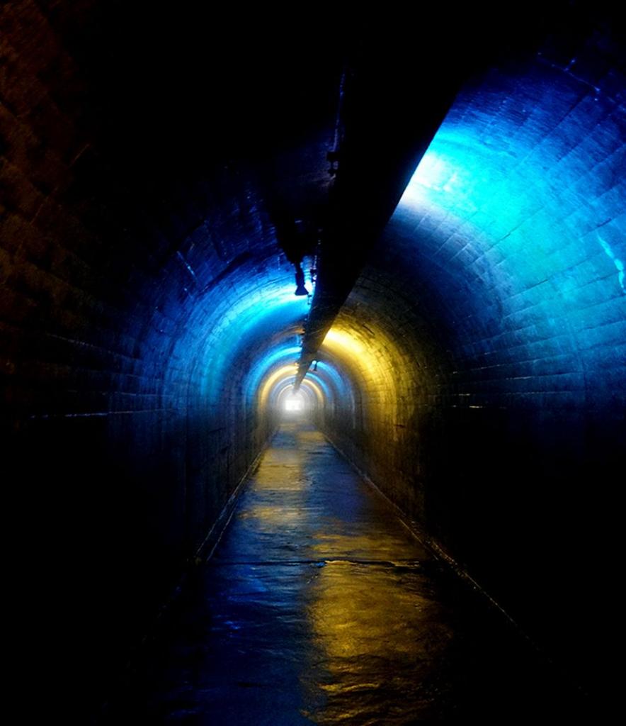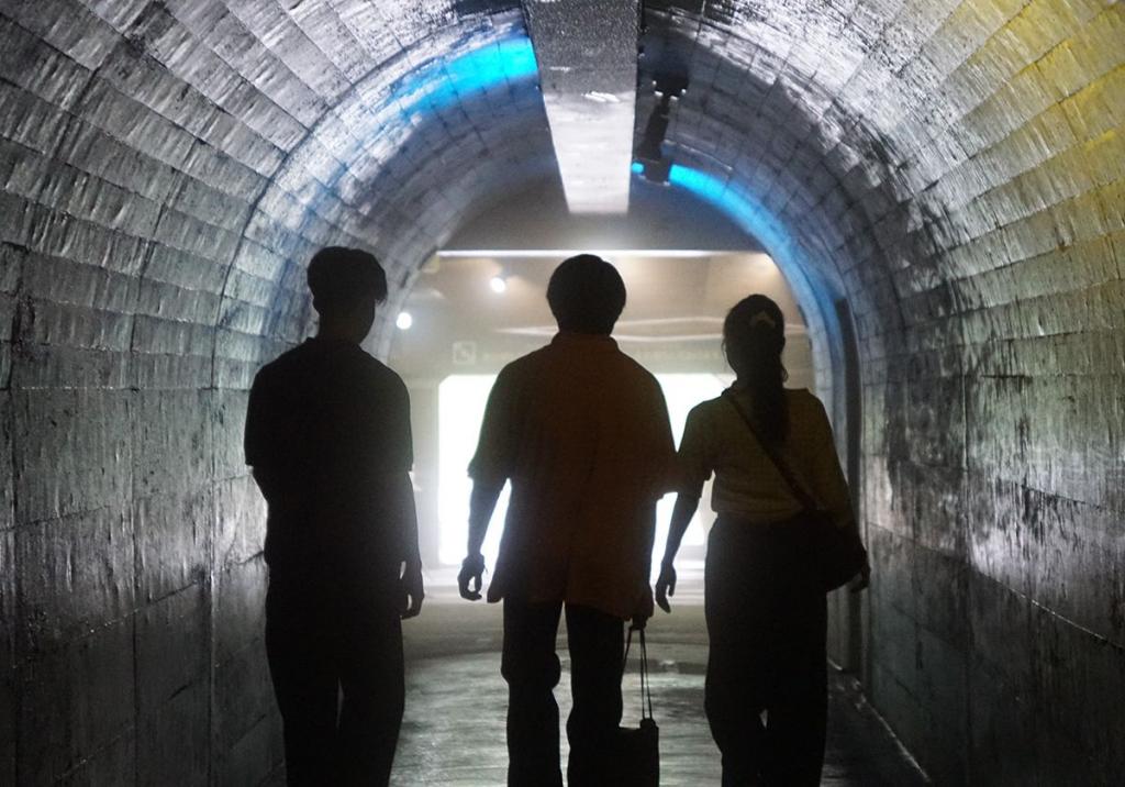 私たちが訪れたのは、誰でも気軽に楽しめる「一般コース」。入り口を進むと、まず現れるのが長く続く人工トンネル。うっすらと霧が立ちこめ、その霧を照らす色とりどりのライトが幻想的な空間を演出していました。 ひんやりとした風が静かに吹き抜け、まるで異世界へ誘われているかのような感覚になります。
