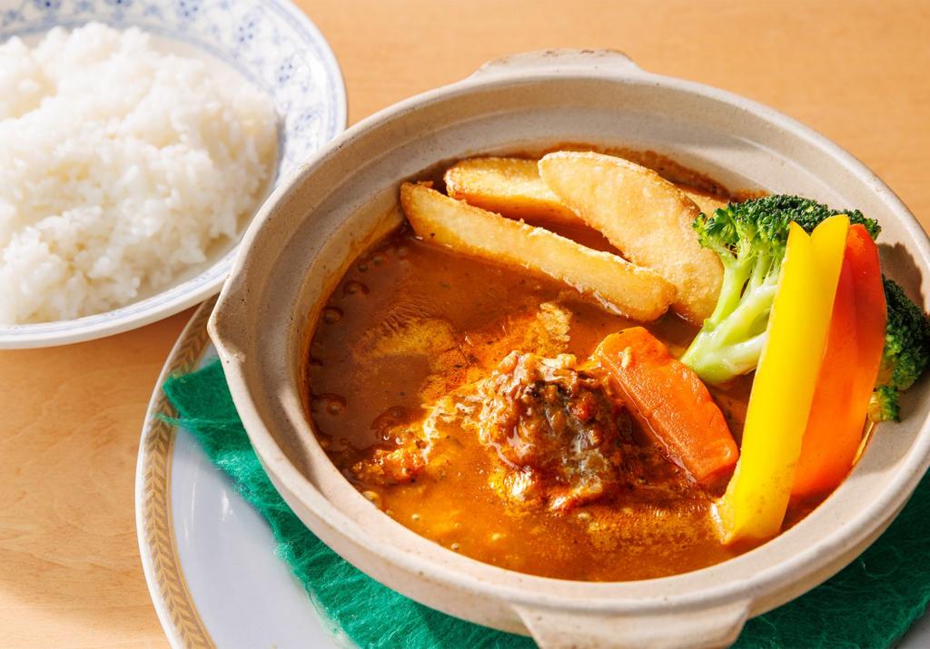10数種類のスパイスで作ったスープカレーを土鍋で熱々にして提供! 火傷必須のスープカレーです。