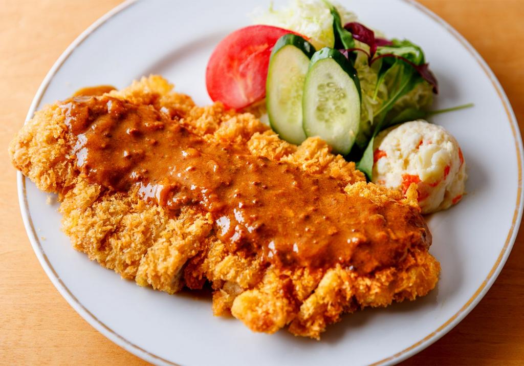 看板メニューの貝汁や漁師SHIRASU飯で有名な「南里」からは、トンカツ(熊本県産りんどうポーク)が主役のカレーカツ定食が登場。