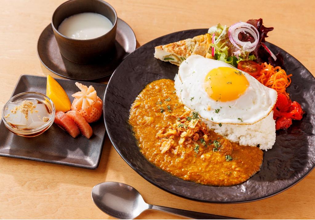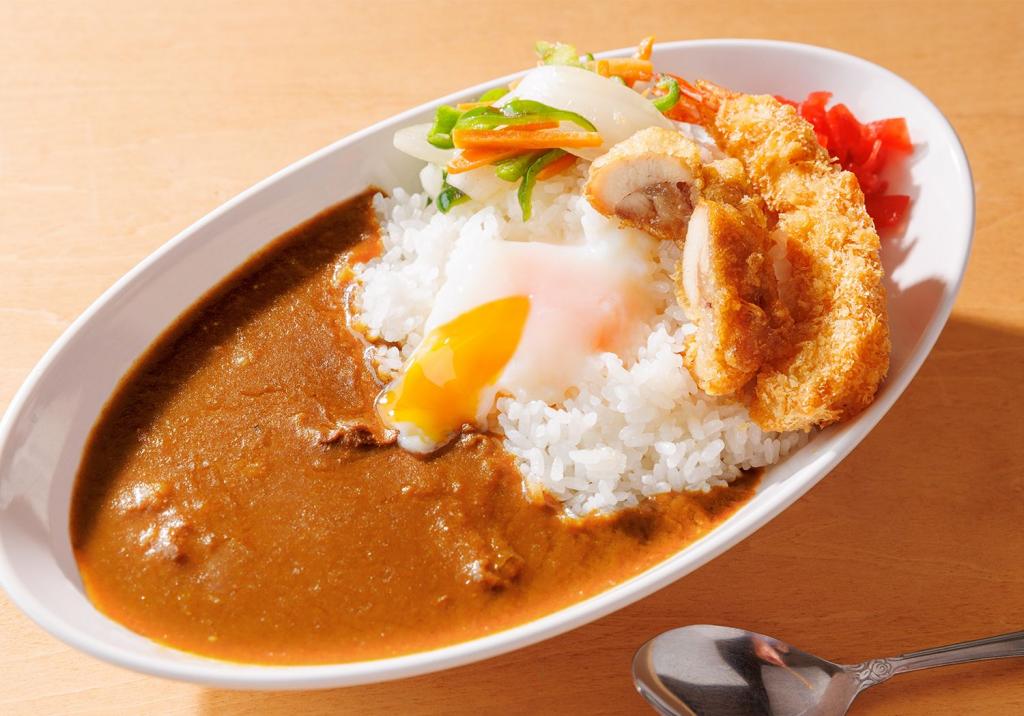 温泉施設内のレストランで提供されるのは、温泉をイメージした“温泉卵”をトッピングしたカレー。