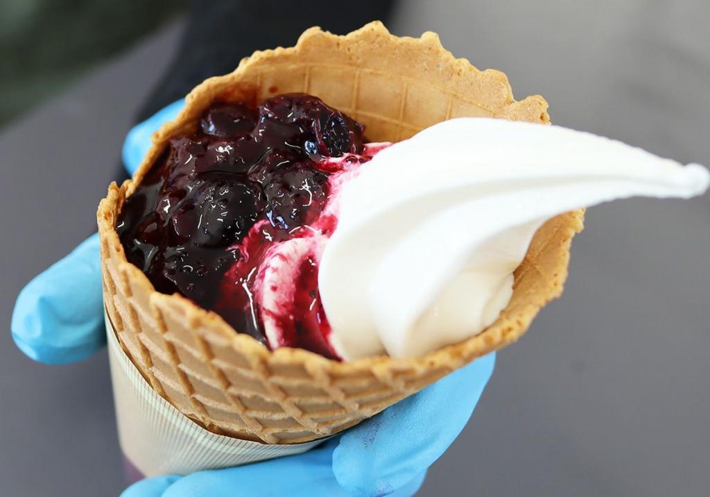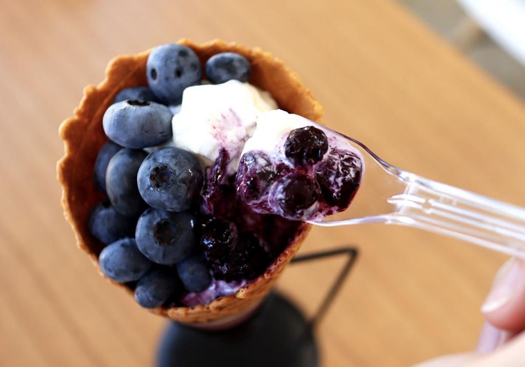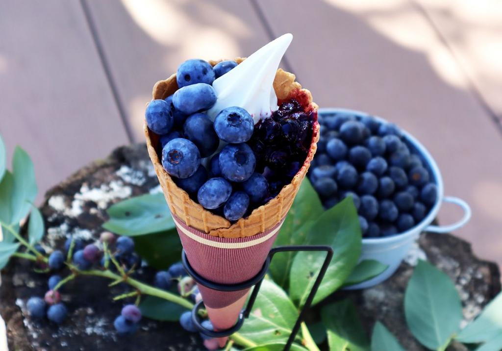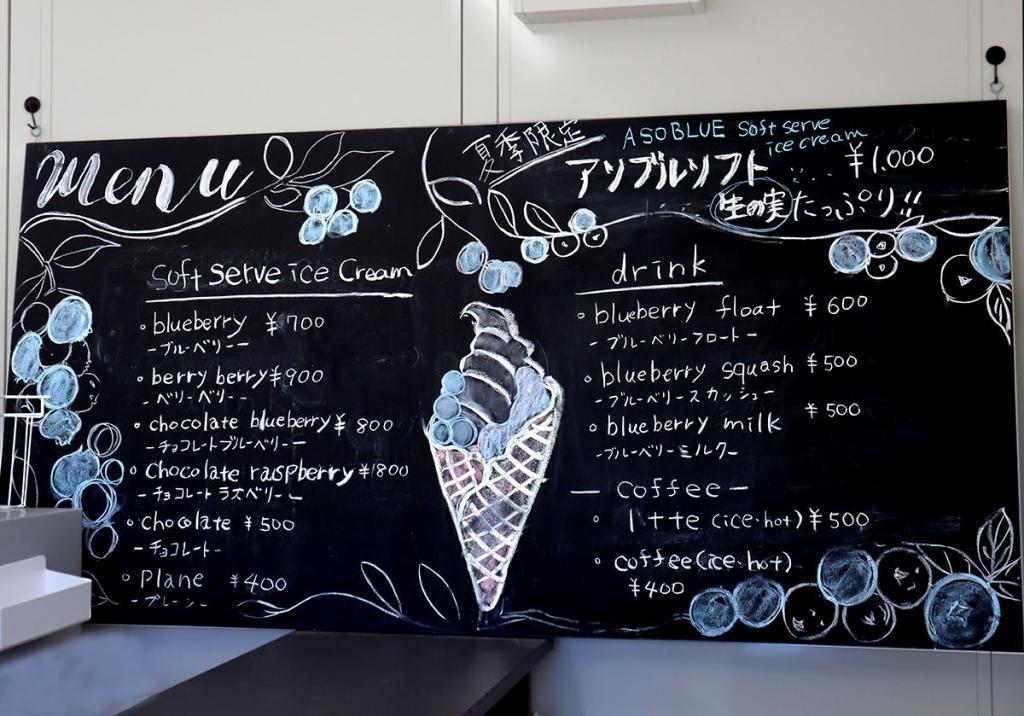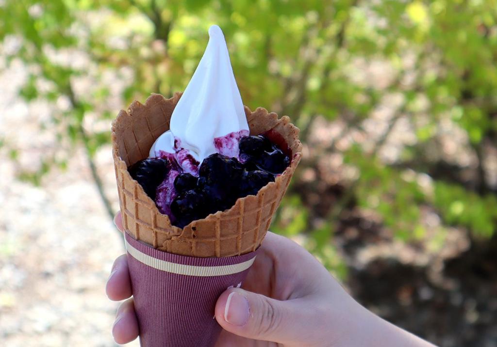 今の時期(8月)は、ブルーベリーソースに農園で収穫したブルーベリーの実をトッピングした夏季限定の「アソブルソフト」が登場中。旬の時期にぜひお試しを。