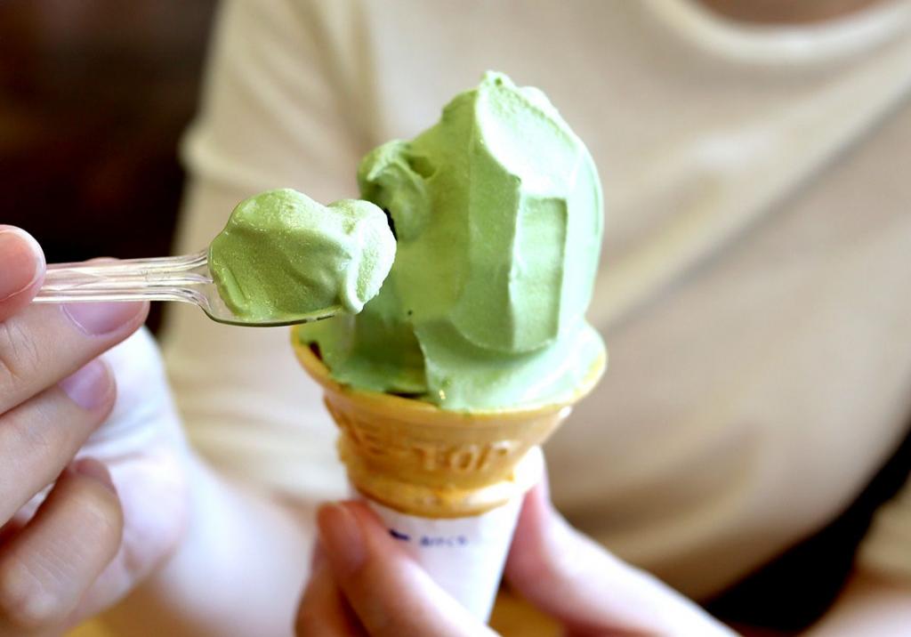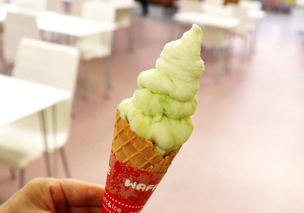 ここでご紹介したいのが、これぞご当地というに相応しい「イ草」を使ったソフトクリーム。実は道の駅がある八代エリアは、畳の原料となる「イ草」の生産量が全国1位のエリア。イ草の新たな魅力を伝えたいと、館内の「おやつ工房」で20年以上前に生まれたメニューです。