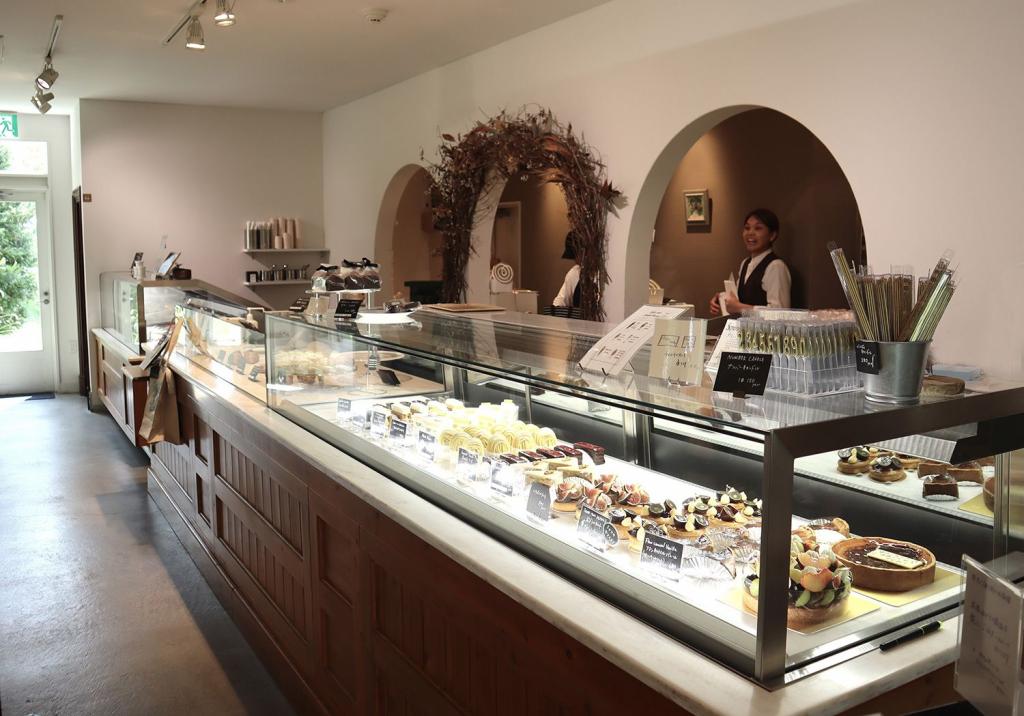 平日・休日問わず、県内外から多くの人が訪れるカフェ併設の洋菓子店「ricca」。木々に囲まれたアプローチを抜け店内に入ると、その先には色とりどりのケーキやジェラート、パンがショーケースに並ぶ、きらびやかな空間が出現します。