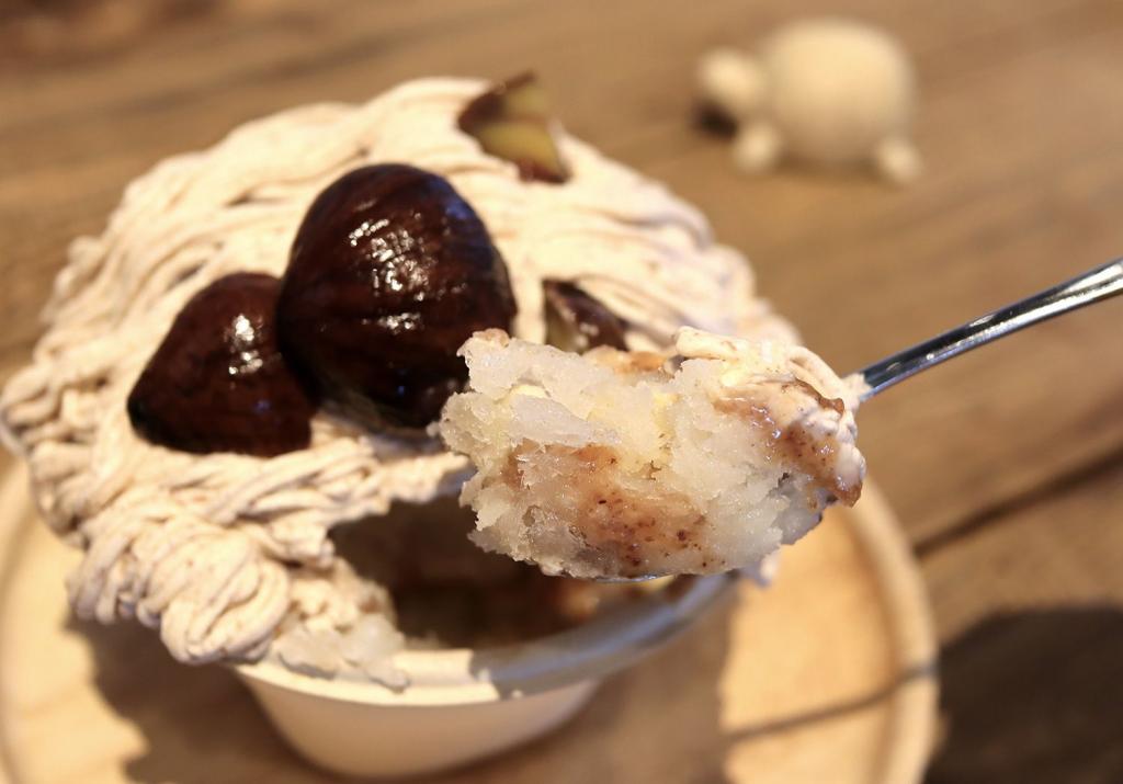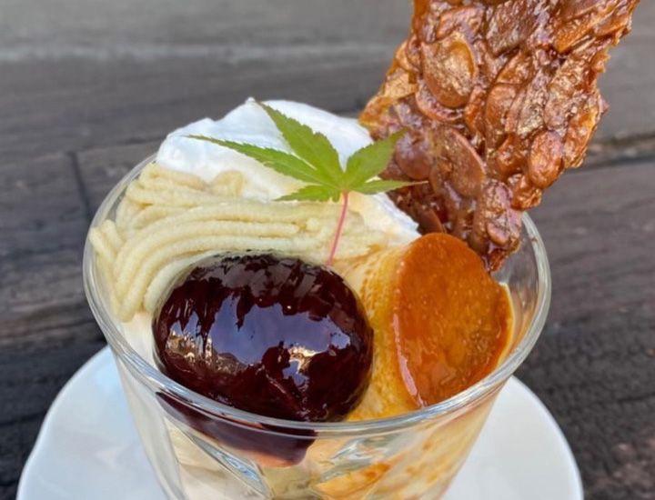 甘さ控えめのマロンクリームの上には、山鹿和栗を使った渋皮煮がトッピングされているのですが、この中が凄いことになってます。一番下から、自家製の甘酒と豆乳を固めたプリン→麦味噌キャラメルソース→ふわふわ氷→マロンクリーム→甘酒みるくソース→マロンソース→ふわふわ氷→味噌キャラメルソース→マロンソースと、何層にも重なっていて、食べ進めるごとに感動が止まりません!