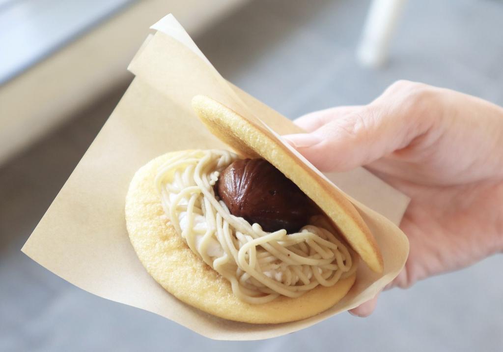 濃厚なマロンクリームと素朴な甘さの渋皮煮、そしてホイップクリームを自家製の“どら皮”でサンドした逸品で、上品な甘さが特徴のどら焼きです。