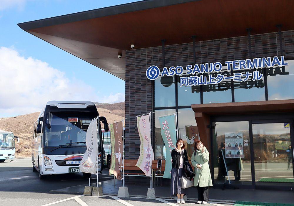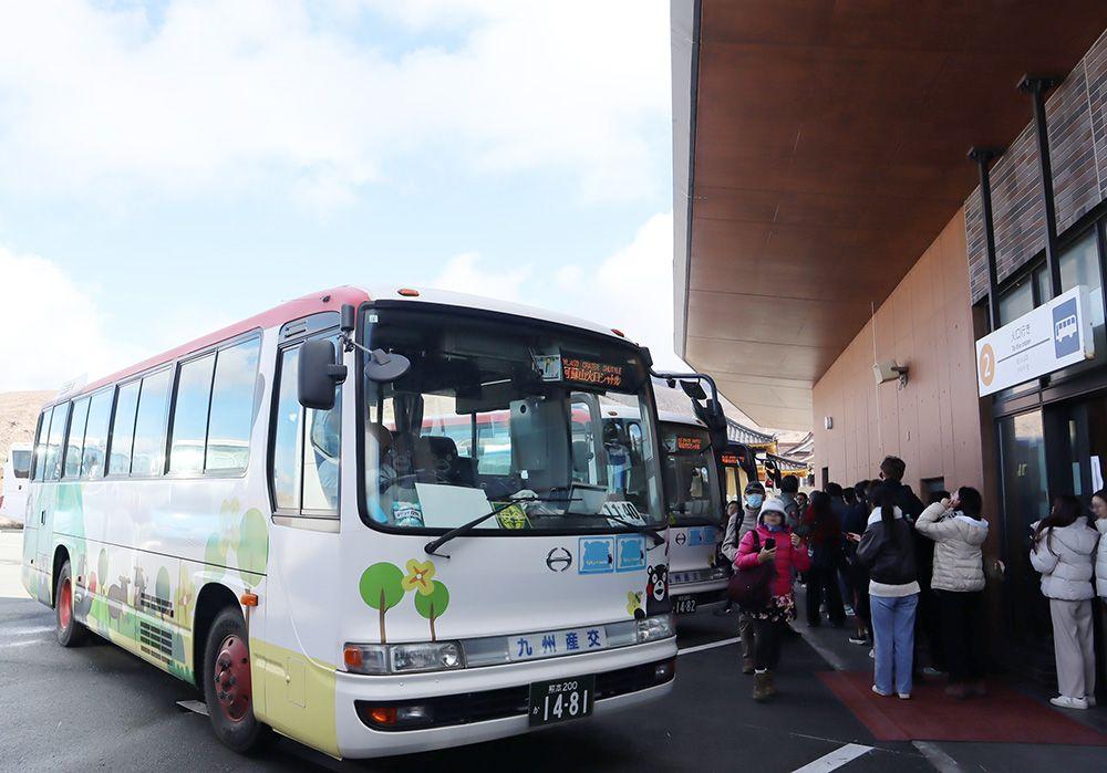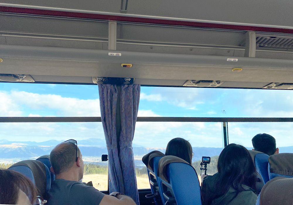 このバスに乗って、次の目的地「阿蘇山上ターミナル」へと向かいます。