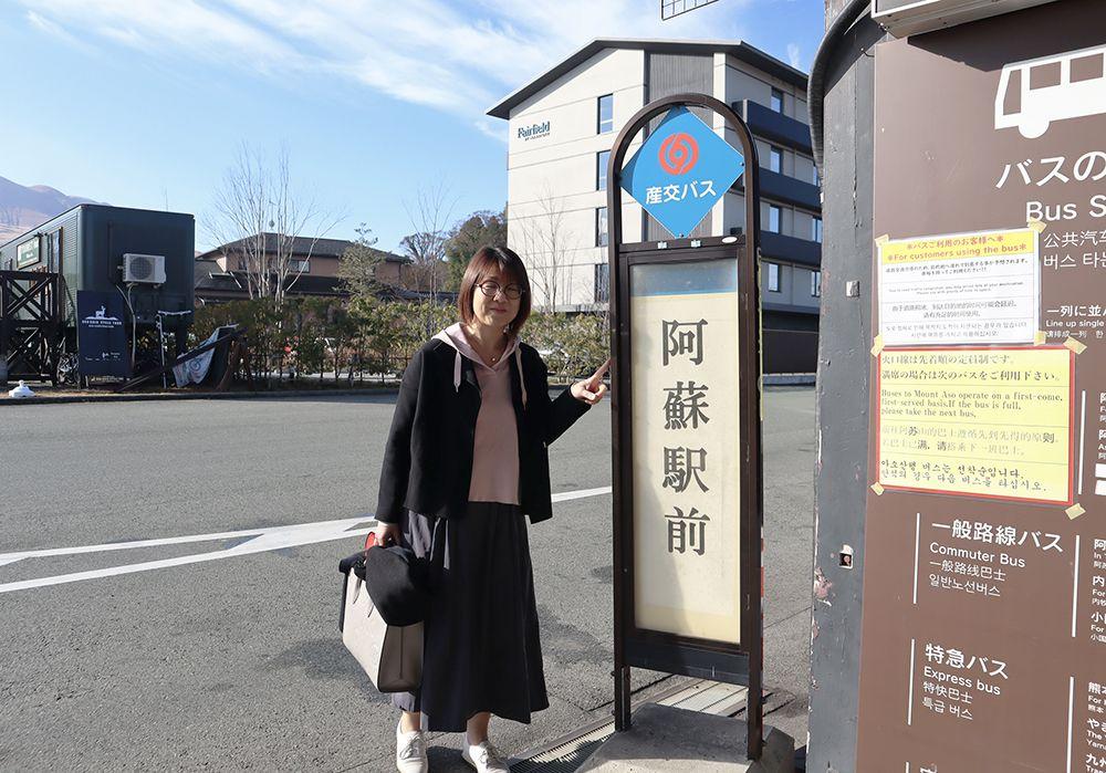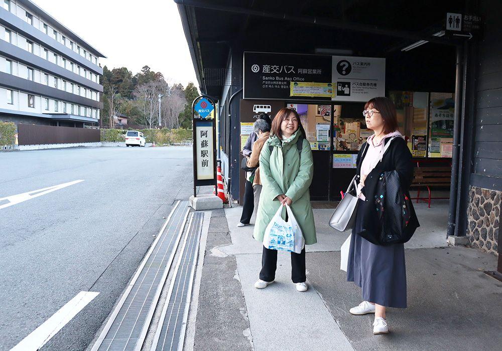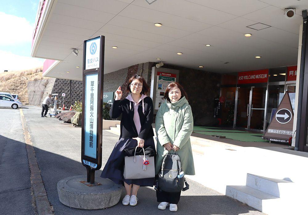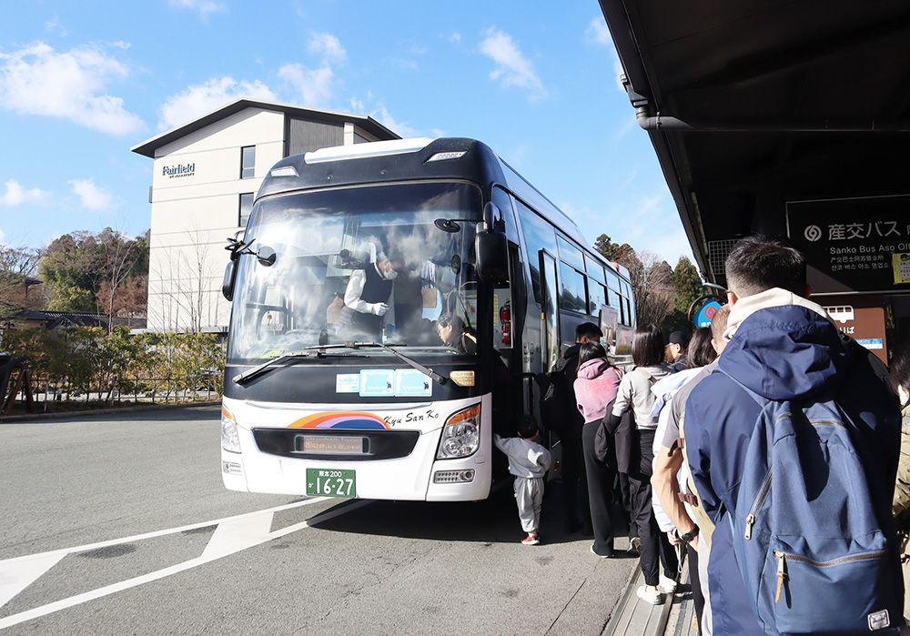 3時間のフリータイムもあっという間に終了。次のバスが到着する時間です。「草千里阿蘇火山博物館前」のバス停から「路線バス(阿蘇駅行)」に乗車しましょう。