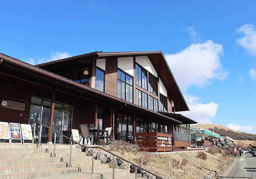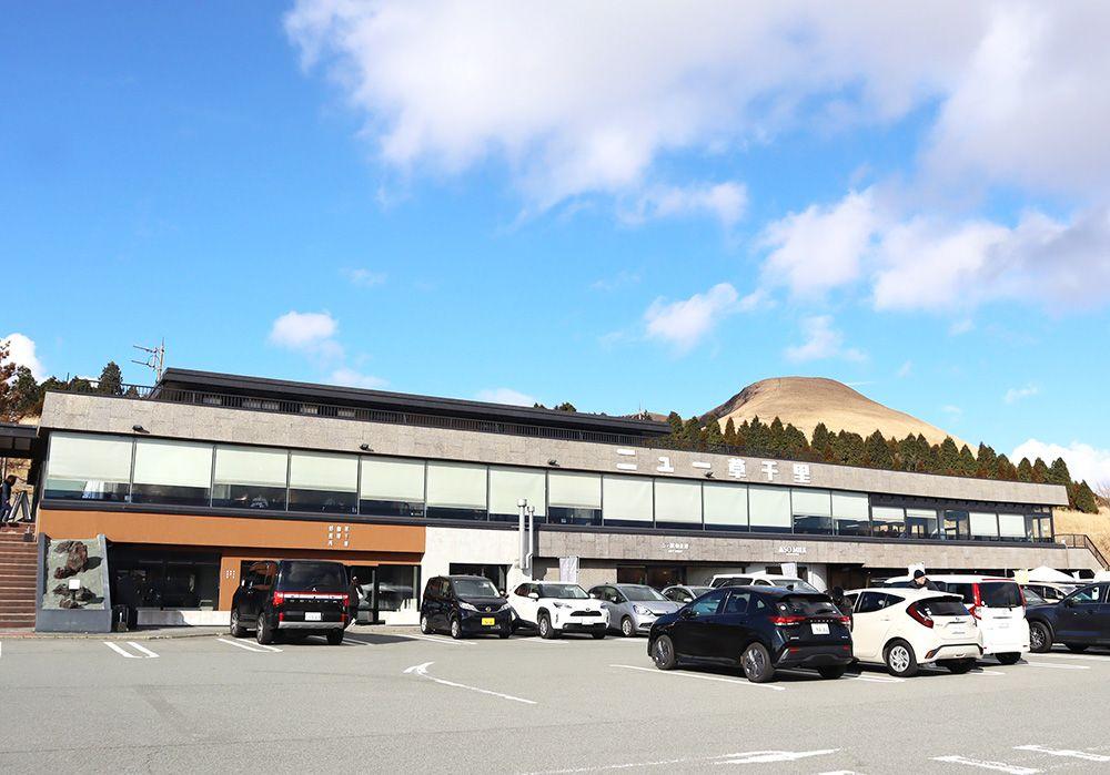 散策の後は、カフェやレストラン、阿蘇山の成り立ちが学べる阿蘇火山博物館、お土産店など、個性豊かなショップが集まる草千里ヶ浜の駐車場エリアへ。