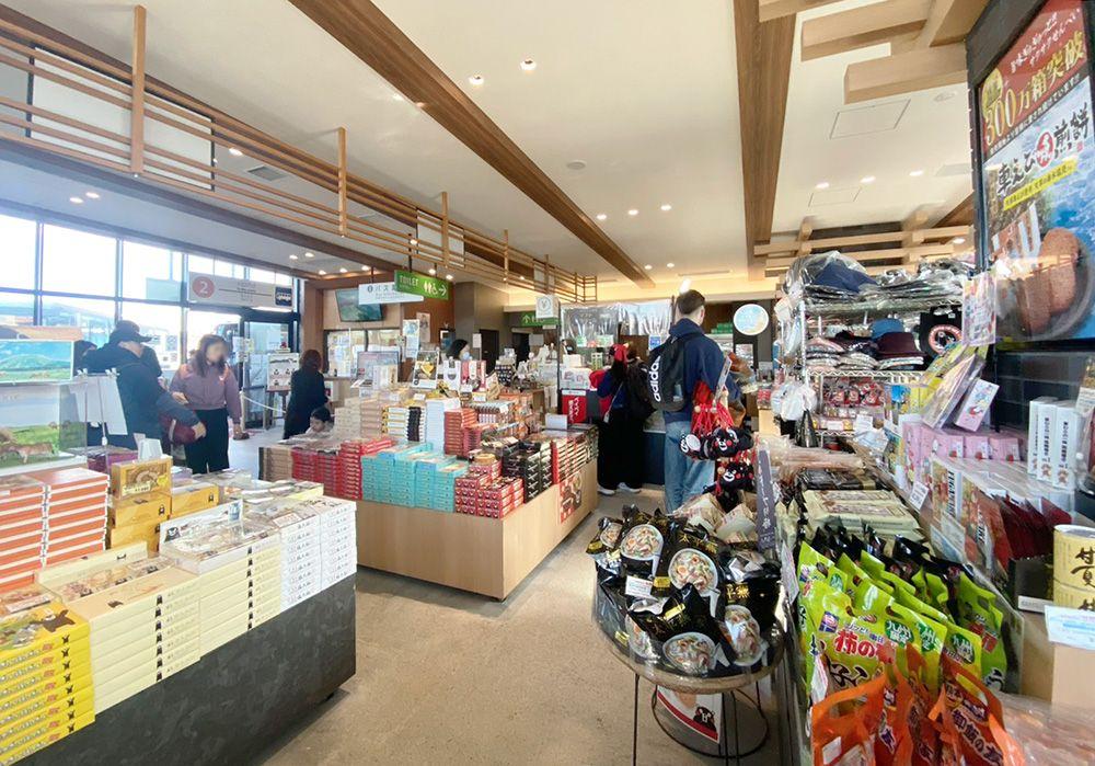 こちらは阿蘇山上ターミナルに併設された売店。お土産に最適なお菓子やくまモングッズなども販売されています。
