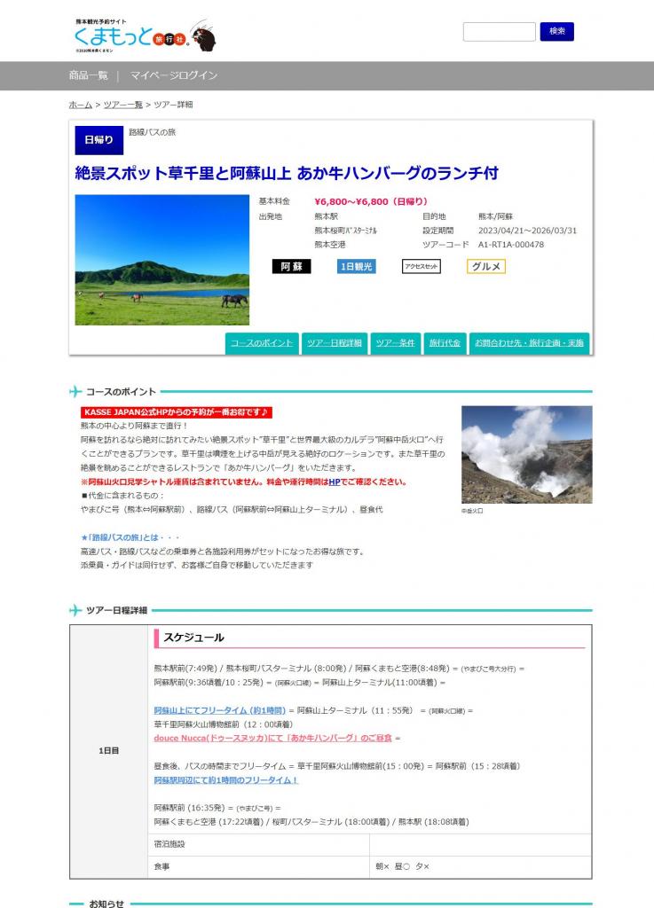 今回私たちが参加したのは「絶景スポット草千里と阿蘇山上 あか牛ハンバーグのランチ付」。