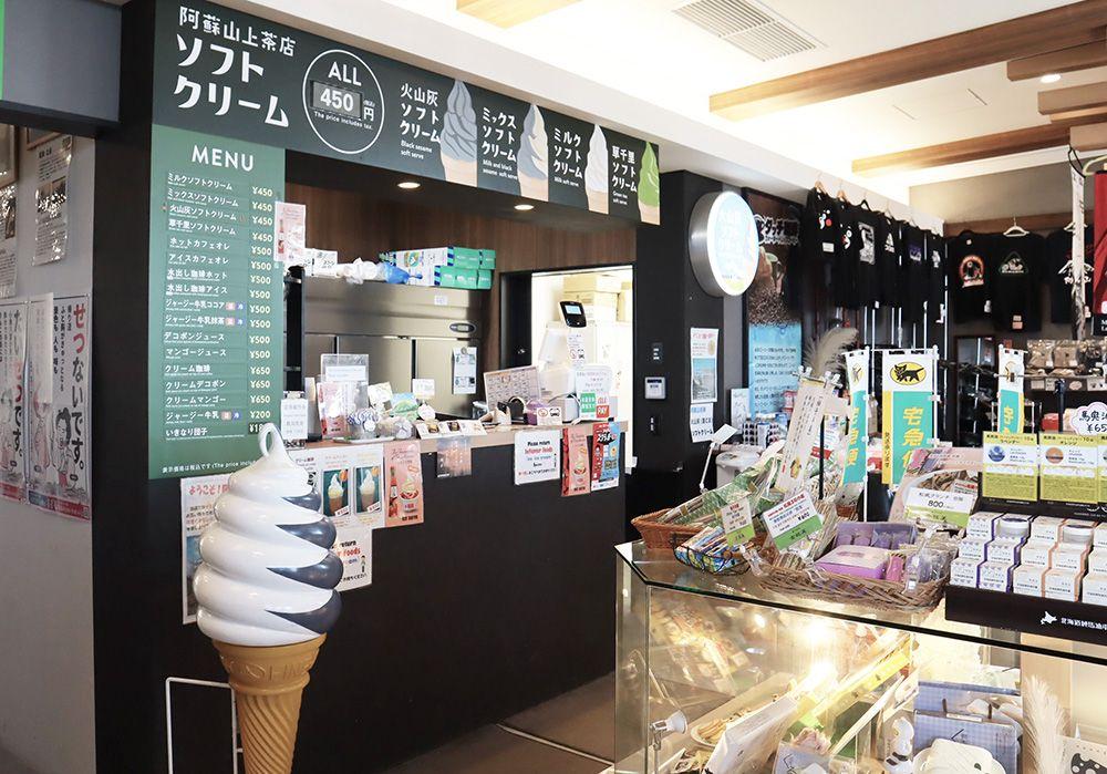 小腹がすいたら名物の火山灰ソフトクリームを味わうべし! どんな味かは現地で食べてからのお楽しみ。