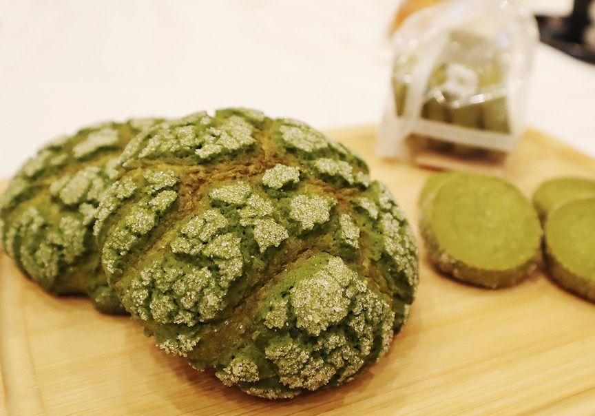 鮮やかな抹茶の緑色と、ころんとした正方形のパンが目を引きます。パンの中には、なめらかでコクのある抹茶クリームがたっぷり入っており、ひと口ごとに抹茶の風味が広がります。