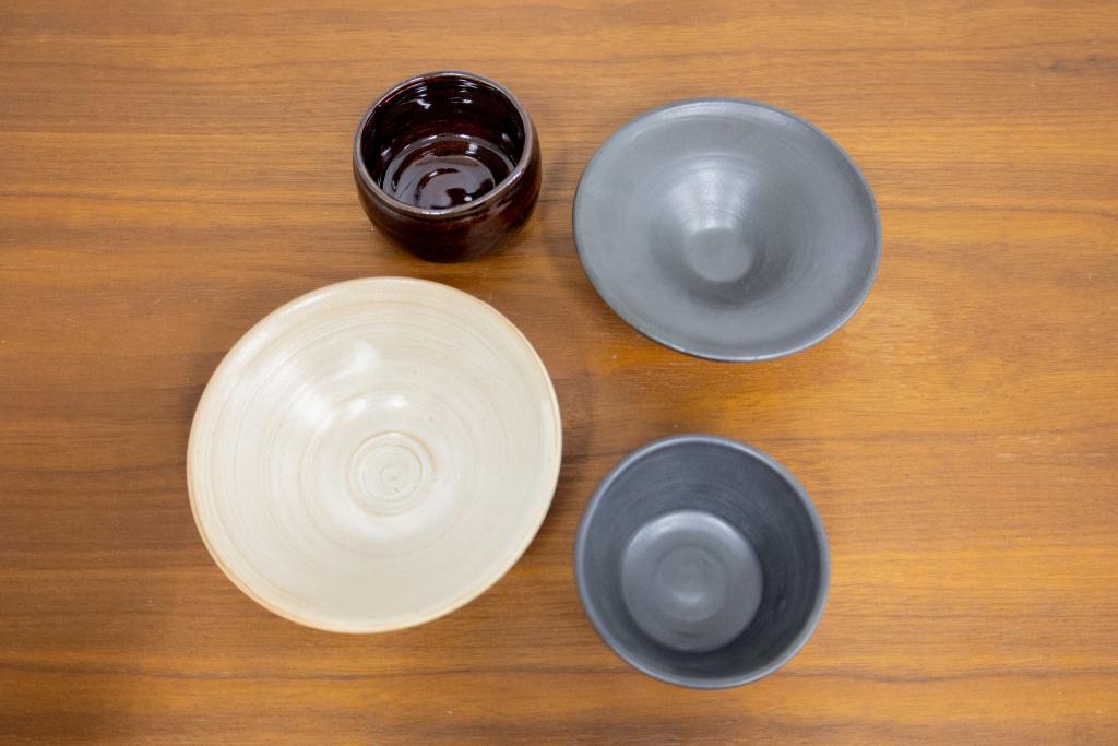 その都度先生にアドバイスをいただきながら、少しずつ形にしていきました。特に平たい器は、ろくろの回転による遠心力で形が歪んでしまい、難しさを感じました。