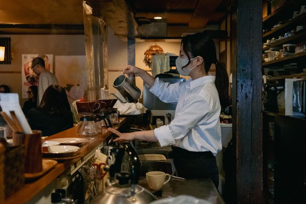 スタッフの方がハンドドリップで珈琲を注ぐ様子を眺めながら過ごす時間は、ゆったりとして心地よいものでした。