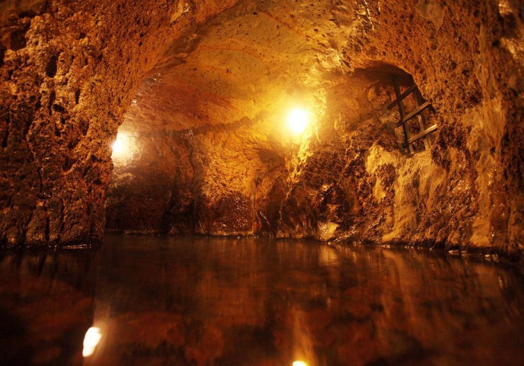 こちらがノミで掘った造られた「洞窟風呂」。入口が2ヶ所あって、反対側へ抜けられるという楽しい仕掛けも。