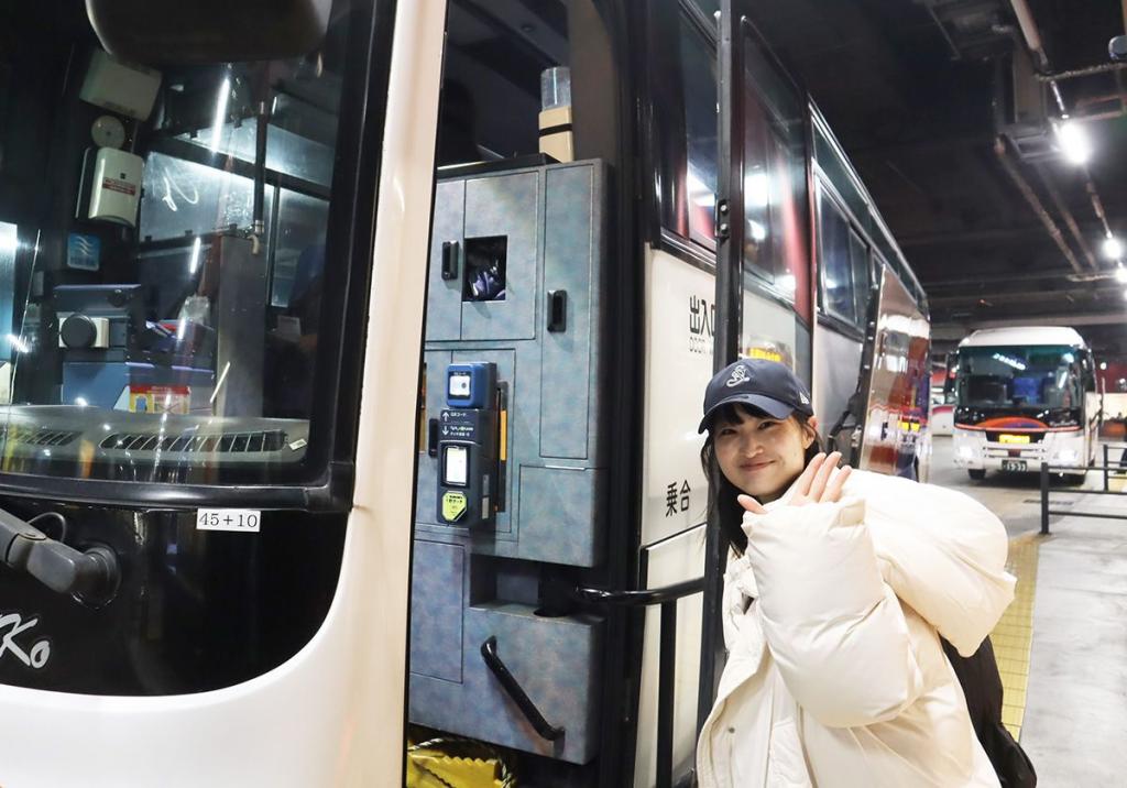 乗務員さんに「行程表・チケット」を提示して、バスに乗り込みましょう。※チケットは紙(事前に印刷したもの)、スマートフォンの画面、どちらでも可。