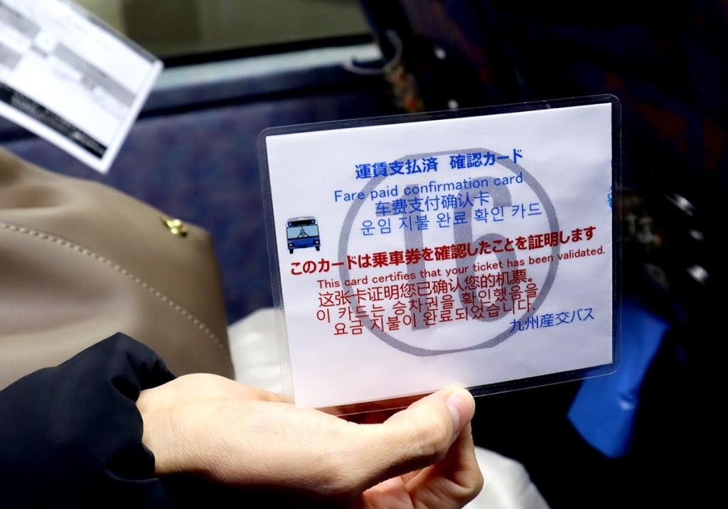 (右)乗車時に渡される「運賃支払済 確認カード」は、降車時に提示するシステム