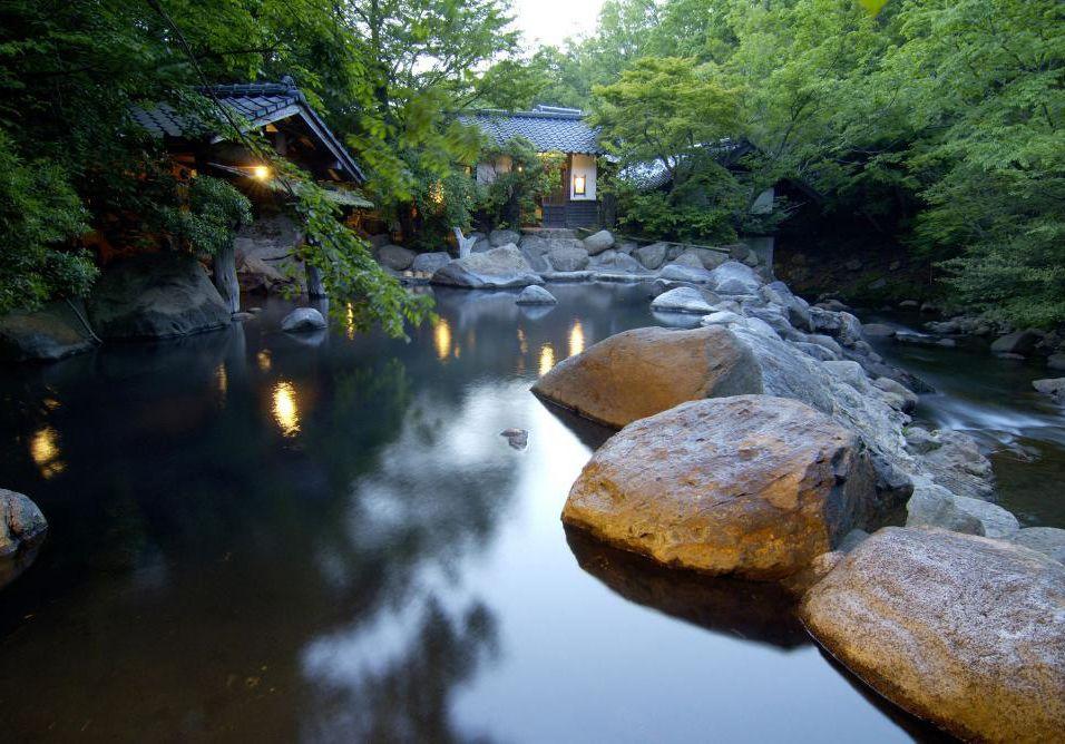 黒川温泉の特徴は、お宿それぞれが源泉を持っていて、個性豊かなお湯が揃うところ。日本に存在する10種類の源泉のうち、何と7種類が揃うのが黒川温泉なんです。一つの温泉地で7種類の源泉が湧くのは全国でも稀で、お宿ごとに全く違う効能の温泉が楽しめるのだとか。何だか得した気分ですよね。