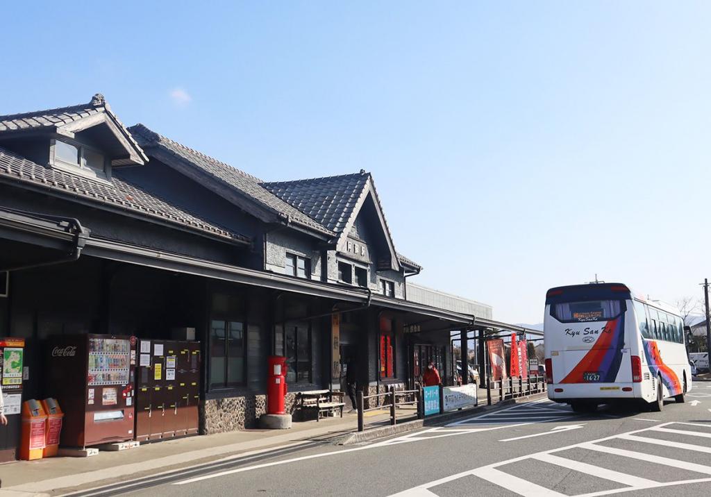 (左)目的地の「黒川温泉」バス停までは約3時間ほど。少し長距離になりますが、途中の「阿蘇駅前」ではトイレ休憩もあるので安心。