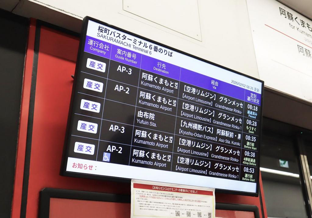 乗車場所は熊本市の中心市街地にある「熊本桜町バスターミナル」の6番乗り場(空港行きリムジンバス、特急バス、夜行バス)。