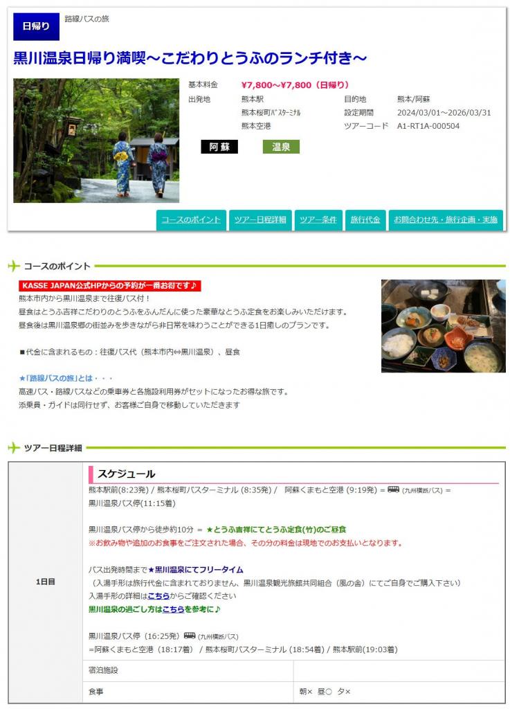熊本市中心部からの出発&日帰り旅なので、「熊本城も見たいけど、黒川温泉にも行きたーい。でも時間があまり取れない」という人にも最適なプランではないでしょうか。ぜひ予約して、黒川温泉を満喫してみてくださいね。