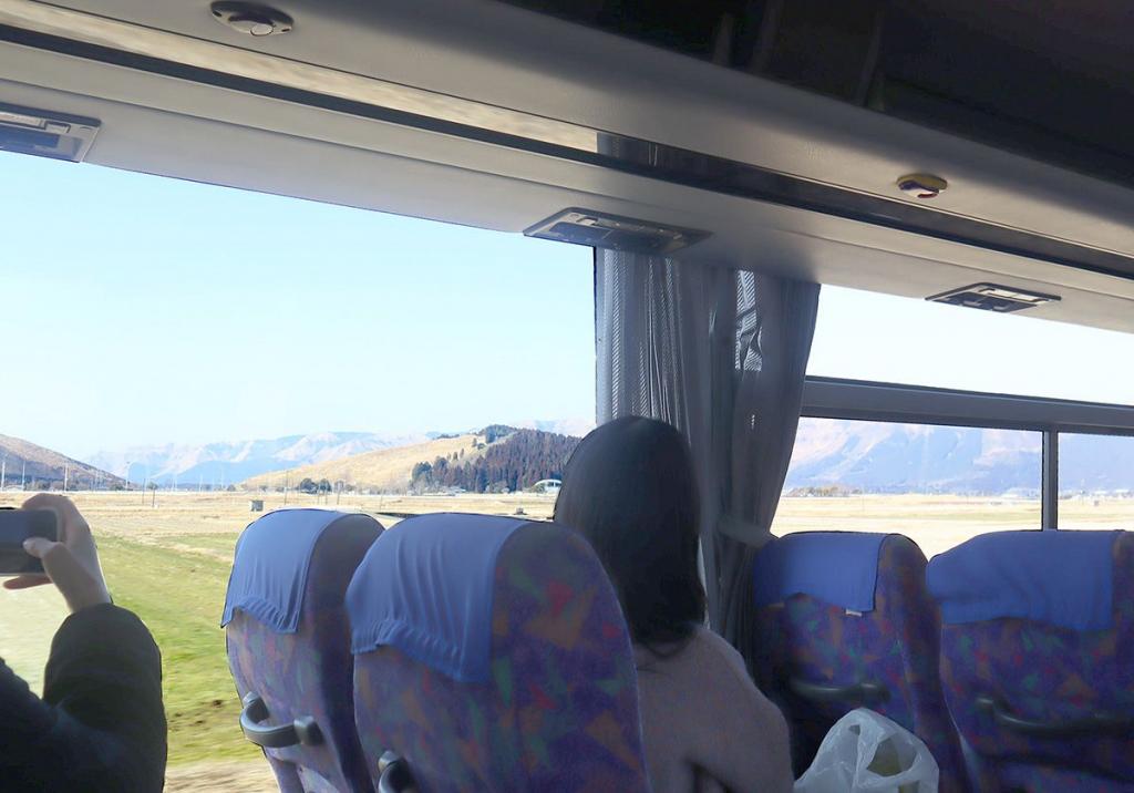 バス停で待っていると16時25分発「熊本~九州横断バス8号」が到着。乗務員さんに「行程表・チケット」を提示してバスに乗り込みます。